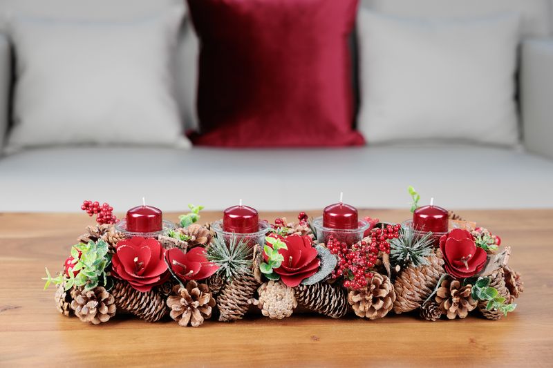 Die rote Dekokerze bringt Feiertagsdekorationen und Dekorationen zum Leuchten.