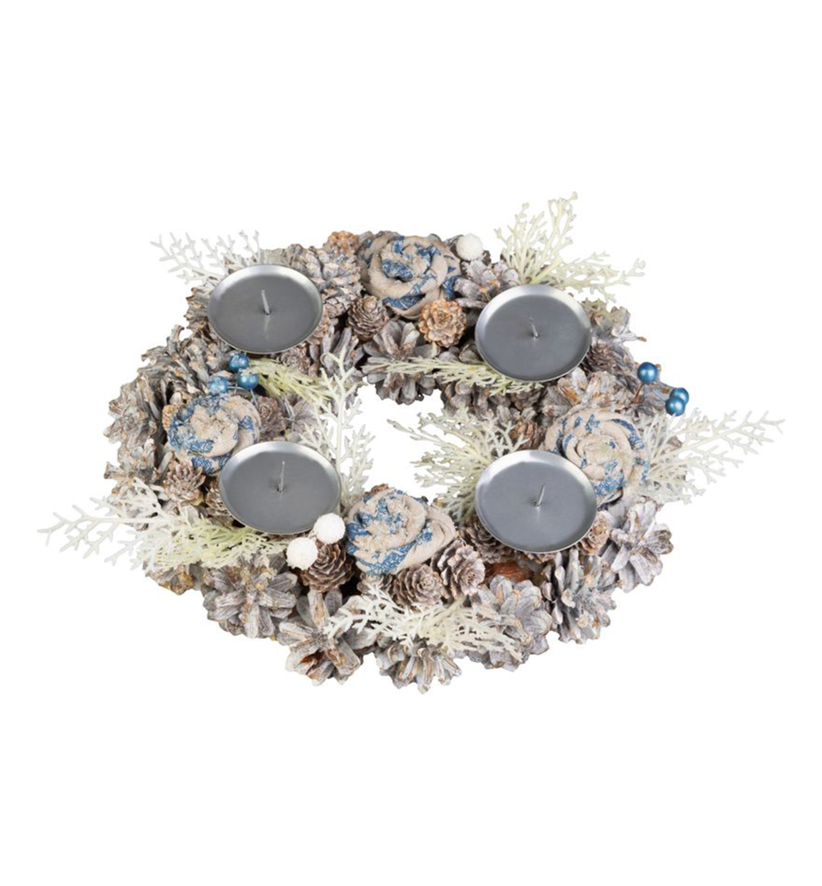 Er ist mit vier Adventskerzenhaltern ausgestattet, dank denen Sie im Advent eine schöne Atmosphäre voller Behaglichkeit und Vorfreude auf Weihnachten genießen können. Der Kranz hat einen Durchmesser von 30 cm.