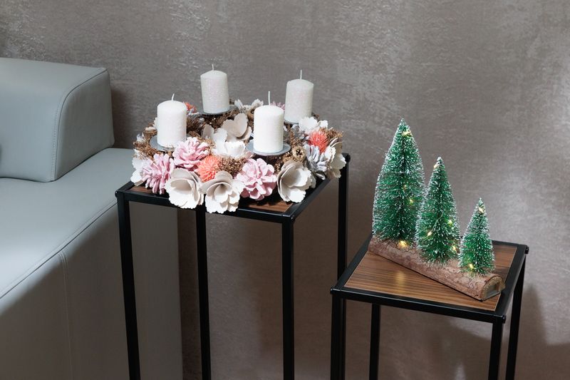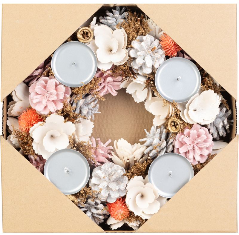 Eigenschaften: Der MagicHome Weihnachts-Adventskranz in einer zarten rosa-orangen Farbkombination ist die perfekte Ergänzung für Ihre Weihnachtsdekoration. Der Kranz ist mit Tannenzapfen, Blumen und kleinen Ornamenten in Kombination mit natürlichen Materialien verziert, die ihm einen eleganten und frischen Look verleihen. Er ist mit vier Adventskerzenhaltern ausgestattet, dank denen Sie im Advent eine schöne Atmosphäre voller Behaglichkeit und Vorfreude auf Weihnachten genießen können. Der Durchmesser des Kranzes beträgt 30 cm.