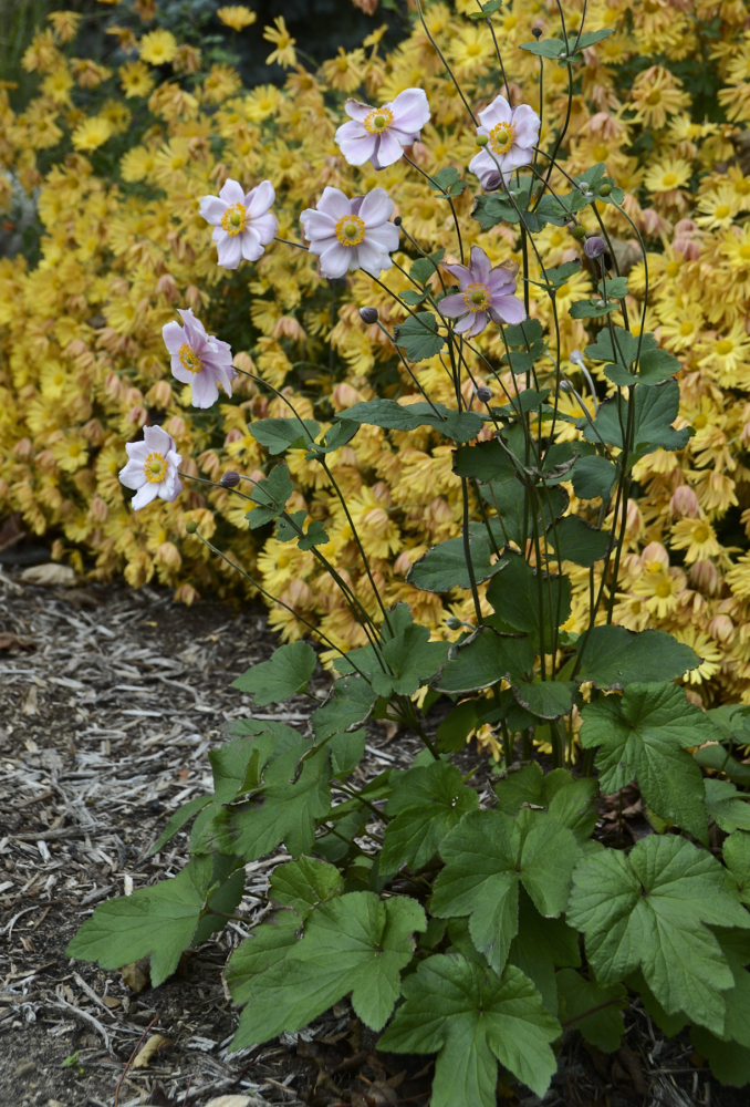 Eine außergewöhnlich reich blühende Herbst-Anemone mit seidenrosa Blüten an langen Stielen.