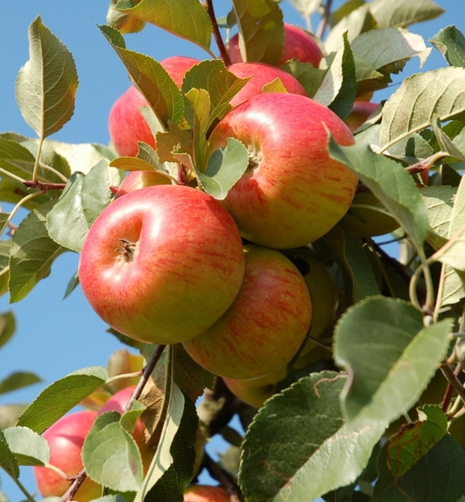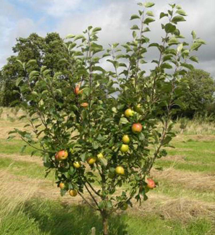 Unterlage | M9 – langsam wachsende Veredelungsunterlage für die Erziehung der Apfelbäume als schlanke Spindel, gewährleistet einen frühen Ertragseintritt, geeignet für fruchtbare und bewässerte Böden, frostbeständig, bildet eine kleinere kompakte Krone |