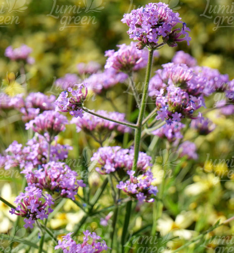 Eigenschaften: Das Argentinische Eisenkraut stammt ursprünglich aus Südamerika. Es handelt sich um eine pflegeleichte Staude mit langer Blütezeit. Die dünnen Stängel tragen längliche, dunkelgrüne Blätter. Ab Juni erscheinen winzige violette Blüten, die in Blütenständen an langen Stielen angeordnet sind. Sie ziehen Bienen und Schmetterlinge an und eignen sich hervorragend zum Frischschnitt in Vasen oder zum Trocknen.