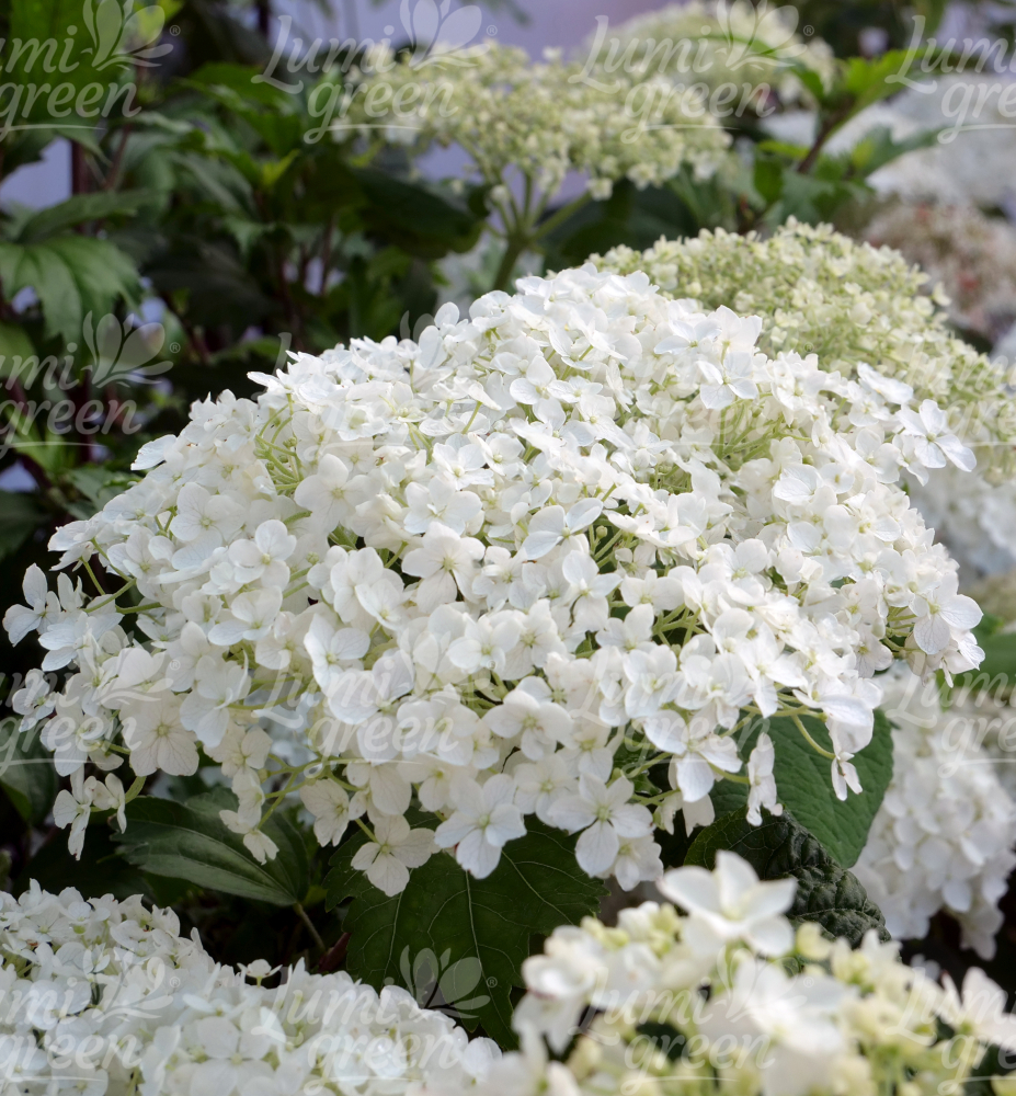 Eine bezaubernde, frostbeständige Hortensie mit großen, weißen Blüten.