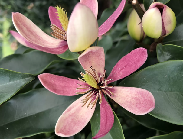NEU! Exotische, immergrüne Magnolie mit auffälligen Blüten und zartem Bananenduft.