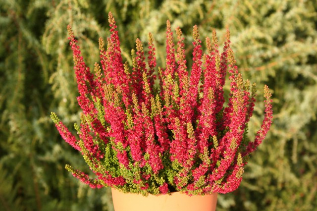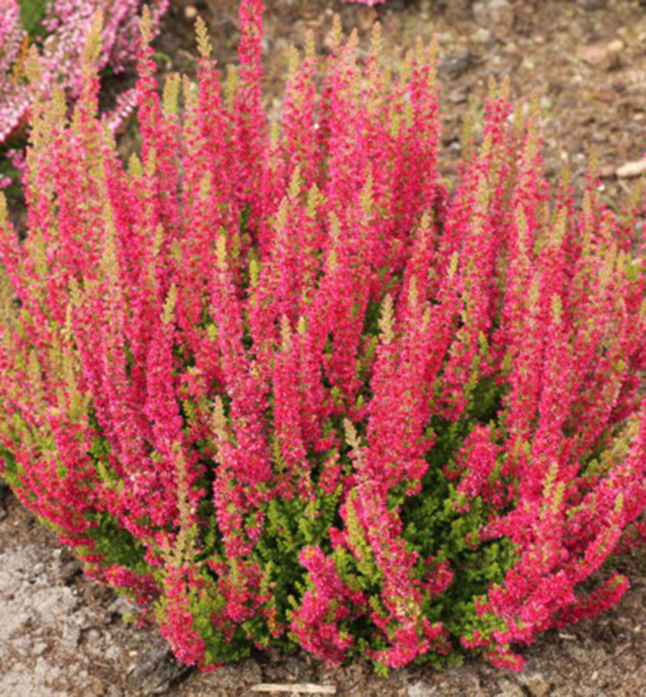 Eigenschaften:Heidekraut „DISCO QUEEN“ ist eine kompakte, kontrastfarbene Sorte mit hellgrünen Trieben und markanten roten Blüten, die die Triebe dicht bedecken. Die Enden der Triebe haben eine hellgelbe bis tiefgrüne Farbe, wodurch diese Sorte jede Bepflanzung angenehm belebt. Erzeugt farbenfrohe Kissen bis zu einer Höhe von ca. 30 cm.