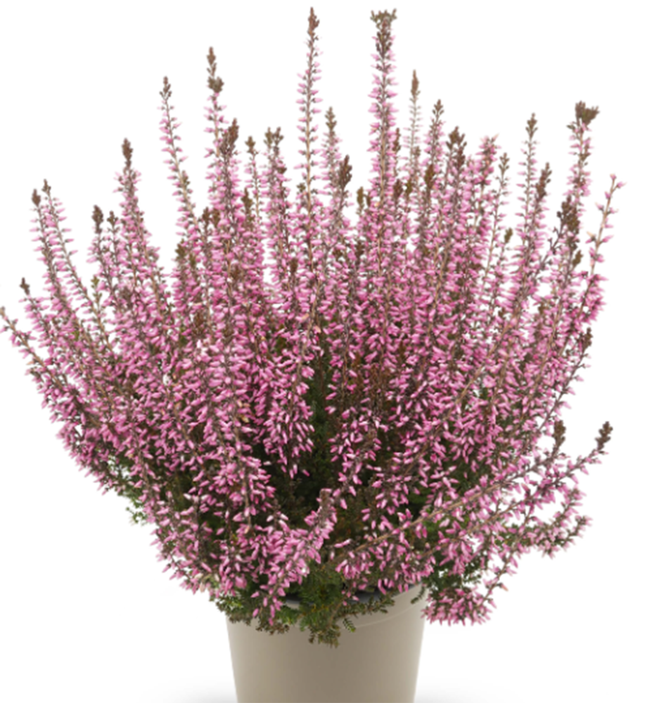 Eigenschaften: Heidekraut 'Romy' bildet einen dichten, halbkugeligen Strauch von etwa 20–30 cm Höhe und 25–35 cm Breite. Ab Ende August bilden sich an den Triebrändern zarte, hellrosa Blütenknospen, die in einer dunkelrosa Spitze enden. Diese Sorte behält ihre schöne, attraktive Farbe lange. Sie eignet sich hervorragend für Heideflächen, Beetränder oder als Teil herbstlicher Topfgestecke.