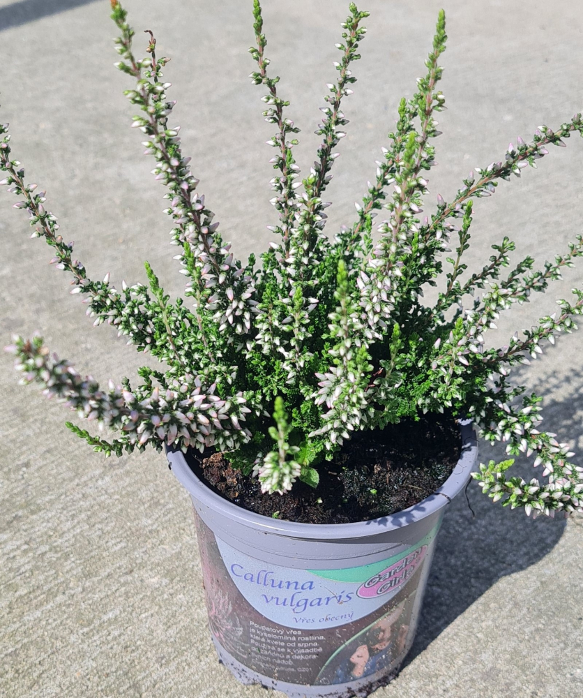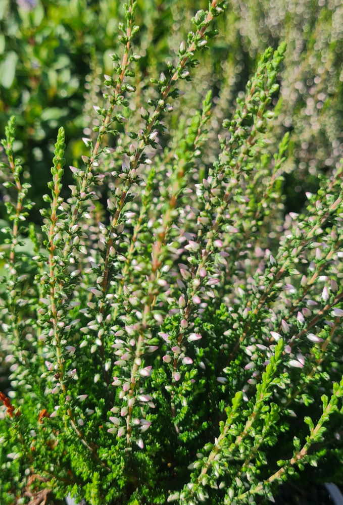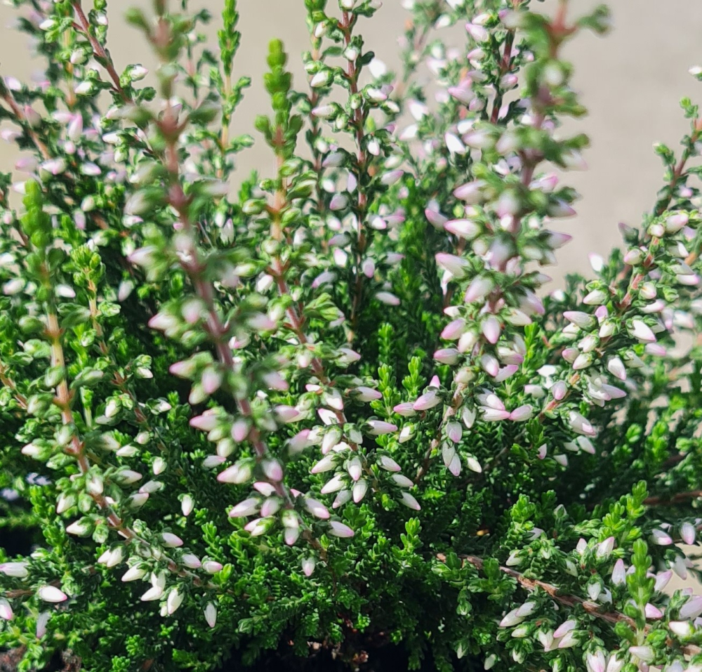 Eigenschaften:Das üppig blühende Besenheide „ROSA ELISA“ blüht vom Ende des Sommers bis zum Beginn des Winters mit weißen Blüten mit einem rosa Schimmer, die an langen, aufrechten Trieben wachsen. Sie wächst kompakt und erreicht eine Höhe von ca. 30 cm. Diese Sorte lässt sich gut mit buntem Heidekraut kombinieren und bildet zusammen mit Miniatur-Koniferen eine interessante Komposition.