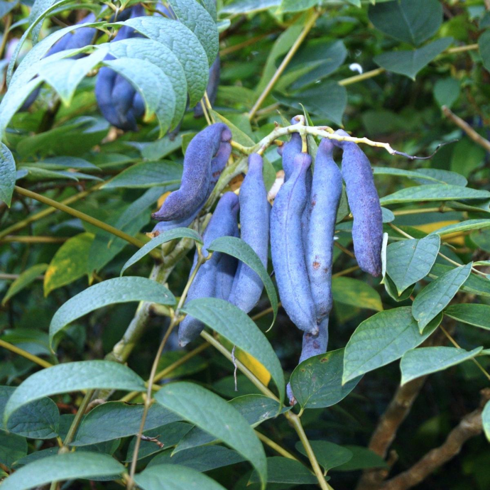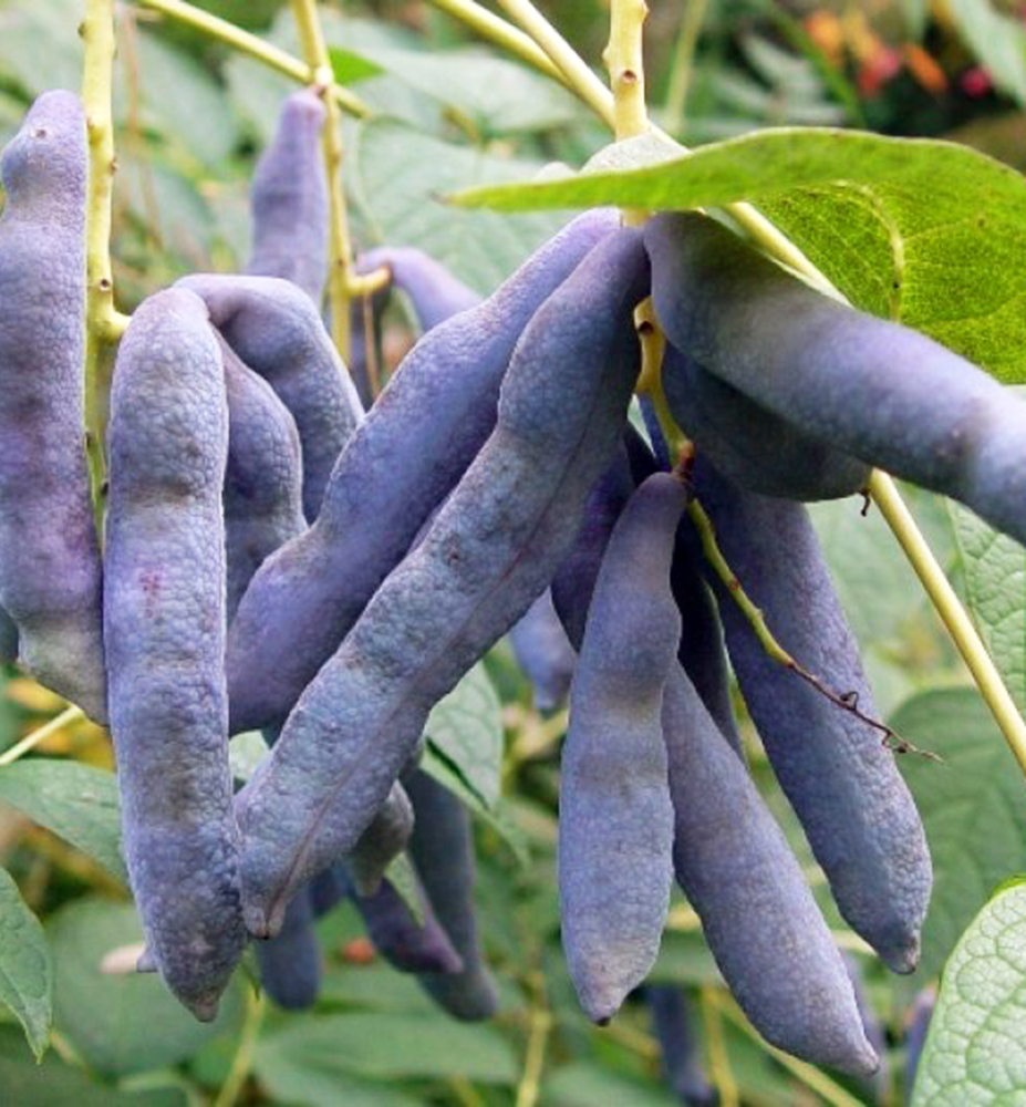 Eigenschaften:Dekaisnea Fargesova stammt aus Westchina und Nepal. Dieser attraktive exotische Strauch wird etwa 3 - 5 m hoch. Im Juni blüht sie mit hellgrünen, kleinen, leicht duftenden Blüten, die an langen Stielen hängen. Diese verwandeln sich später in tiefblaue Schoten, die viele Samen enthalten. Dank ihnen trägt diese exotische Pflanze den Namen „Finger des toten Mannes“. Die Früchte bleiben auch nach dem Abfallen der federartigen Blätter am Stiel hängen, was eine äußerst dekorative Wirkung hat. Die Früchte sind essbar, die Pflanze wird jedoch hauptsächlich wegen ihres attraktiven Aussehens angebaut.
