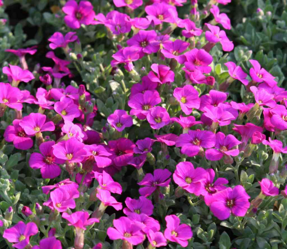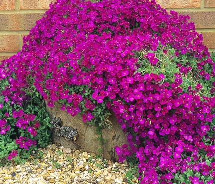 Eigenschaften:Die Sorte 'Florado Rose Red' gehört zu den Sorten, die dichte Teppiche aus kleinen hellgrünen Blättern bilden. Während der Blüte sind die Blätter nahezu unsichtbar. Die Pflanze blüht ab April mit kleinen violetten Blüten. Die Mitte der Blüte ist mit kontrastierenden gelben Staubgefäßen verziert. Blaukissen eignet sich zur Bepflanzung am Rand von Blumenbeeten, Steingärten oder zur durchgehenden Abdeckung von Flächen. Sie kommt in Kombination mit Steinen besonders gut zur Geltung und kann auch in Kübeln angebaut werden.