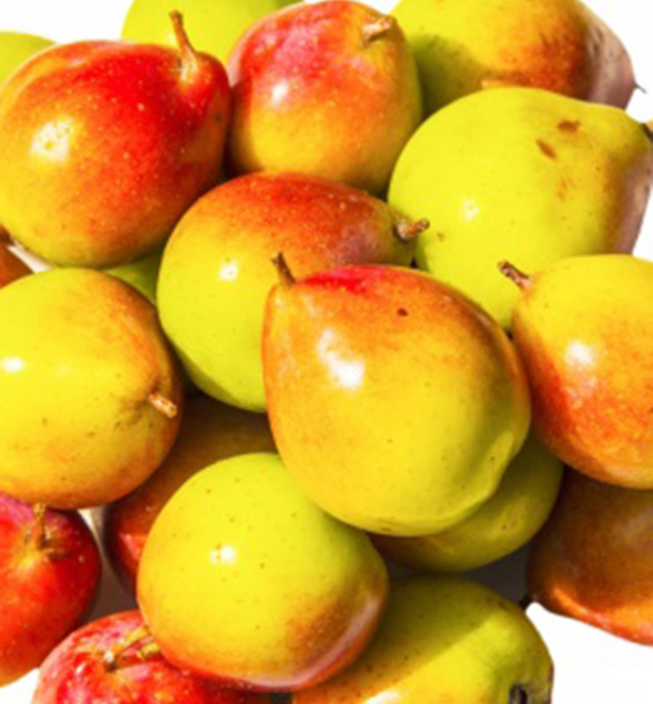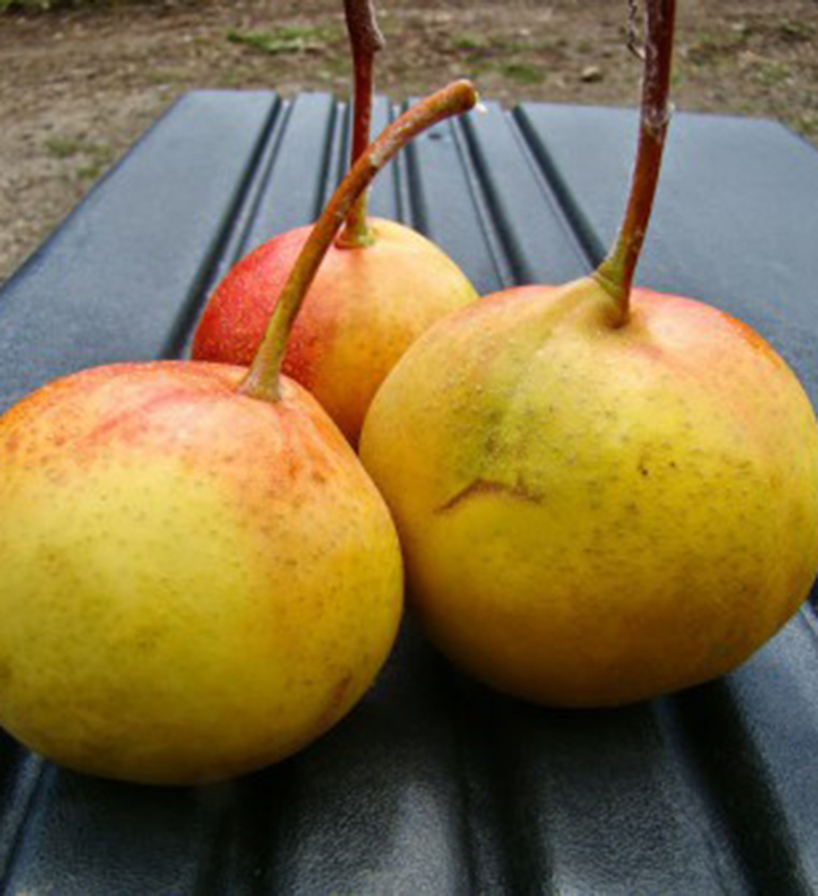 Eigenschaften: Die Bollweilerbirne ist ein anspruchsloser Baum mit ausgewogenem, kompaktem Wuchs, der ihr ein sehr dekoratives Aussehen verleiht und sie oft als Solitärpflanze geeignet macht. Diese alte Sorte trägt in der ersten Septemberhälfte kleine, kugelförmige, goldgelbe Früchte. Das Fruchtfleisch ist saftig und hat einen ungewöhnlich süß-würzigen Geschmack. Form und Geschmack der Früchte erinnern an exotische Früchte. Sie eignen sich sowohl zum Frischverzehr als auch zum Einmachen. Die Sorte ist frost- und rostresistent.