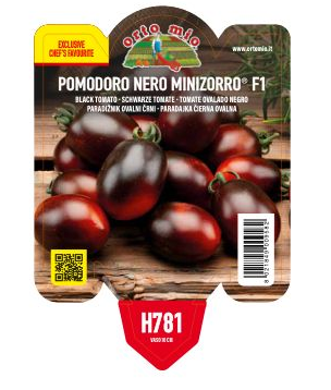 Eigenschaften: Die Tomate ´MINIZORRO F1´ ist eine der neuesten Hybridsorten und bei Gärtnern und Gewächshausgärtnern beliebt. Es zeichnet sich durch seine Resistenz gegen Blattkrankheiten aus. Die Farbe der Früchte variiert von dunkelrot bis violett-schwarz. Der Geschmack ist süß, saftig und hat einen geringen Säuregehalt. Die Früchte sind kleiner und wiegen etwa 15–20 g.