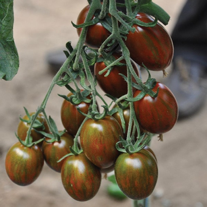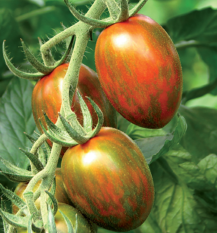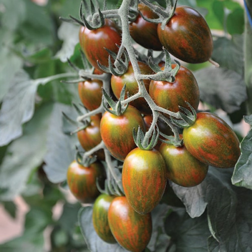 Eine neue, sehr ertragreiche Cherrytomate mit auffälliger grüner Marmorierung.