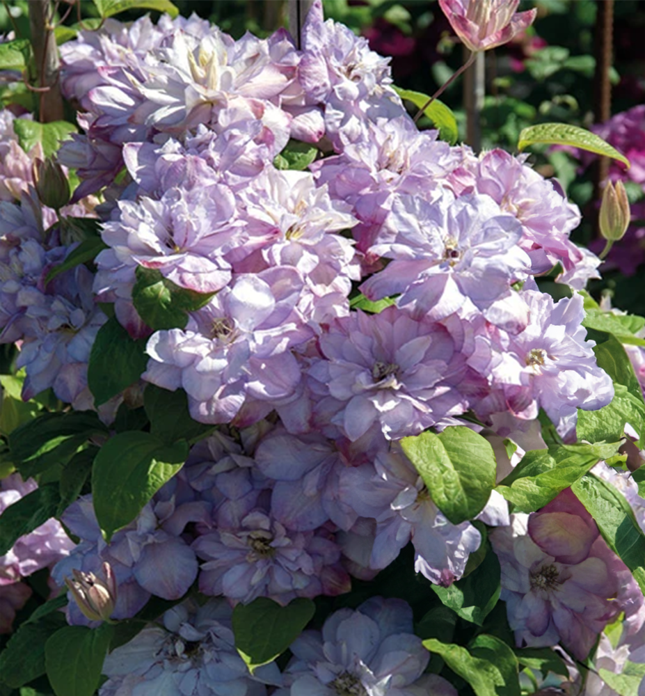Bezaubernde Kletterliane mit großen violett-rosa Blüten und langanhaltender Blüte.