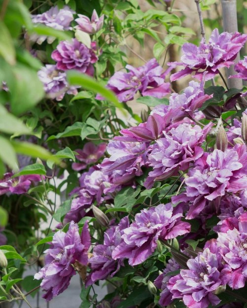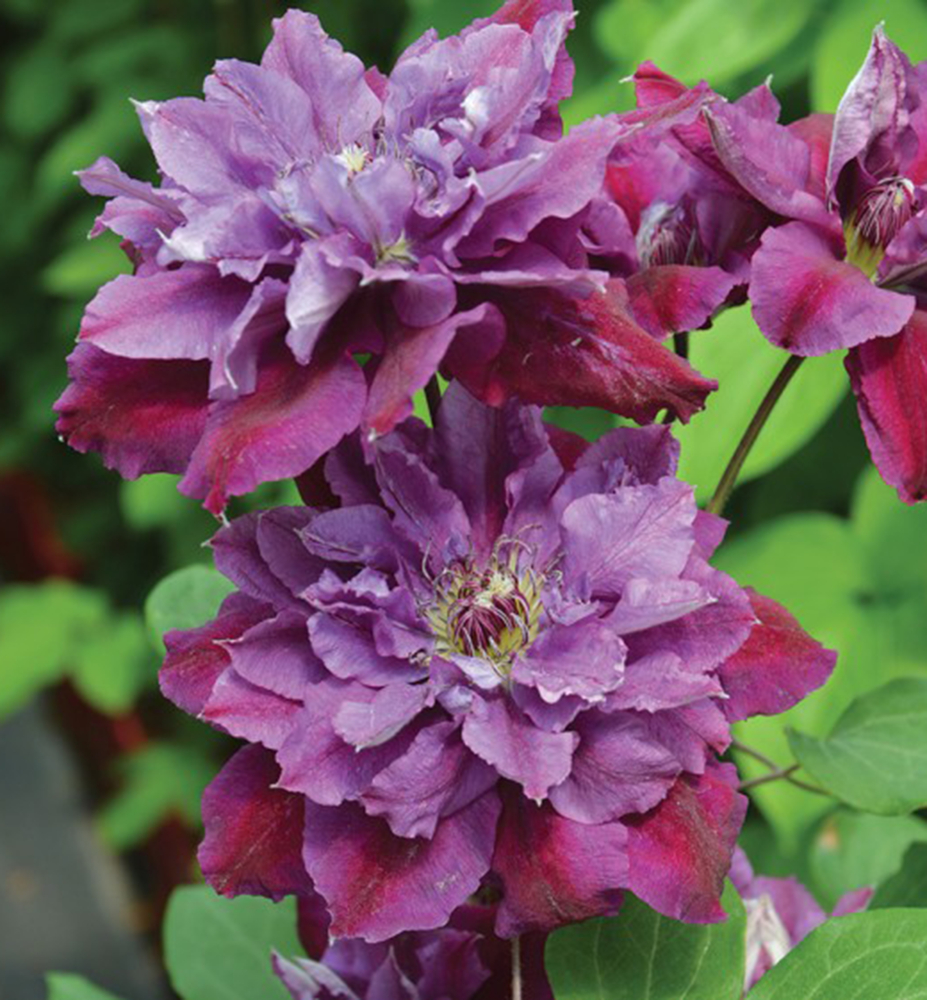 Eine unübersehbare, großblütige Clematis in purpurvioletten Farbtönen.