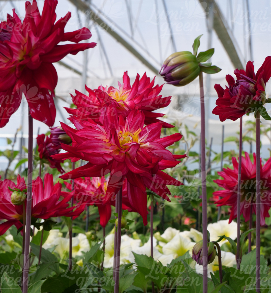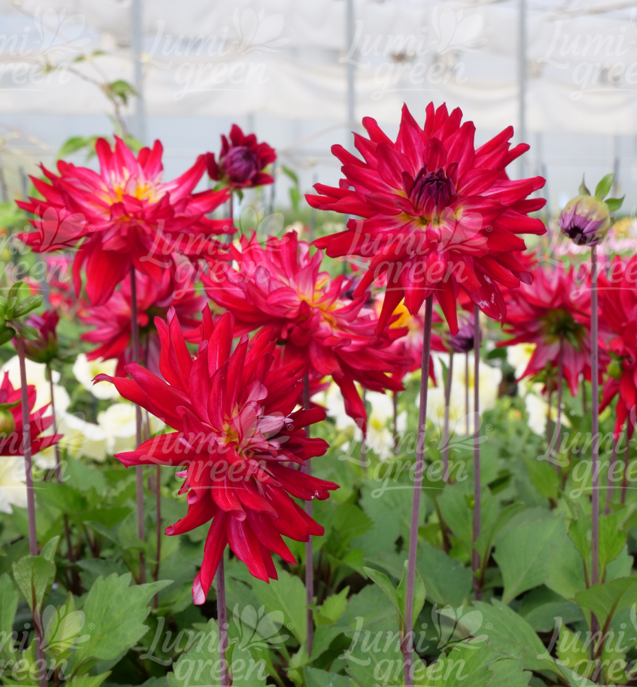 Anbau: Dahlien sind Knollengewächse. Die Knollen sind nicht frosthart, daher müssen sie für den Winter ausgegraben und frostfrei gelagert werden. Nach den ersten Frösten (Oktober) werden die reifen Knollen ausgegraben, gereinigt, getrocknet und in Kisten an einem frostfreien Ort gelagert. Die Pflanzung erfolgt im Frühjahr, wenn keine späten Fröste mehr drohen. Sie benötigen einen sonnigen, windgeschützten Standort.