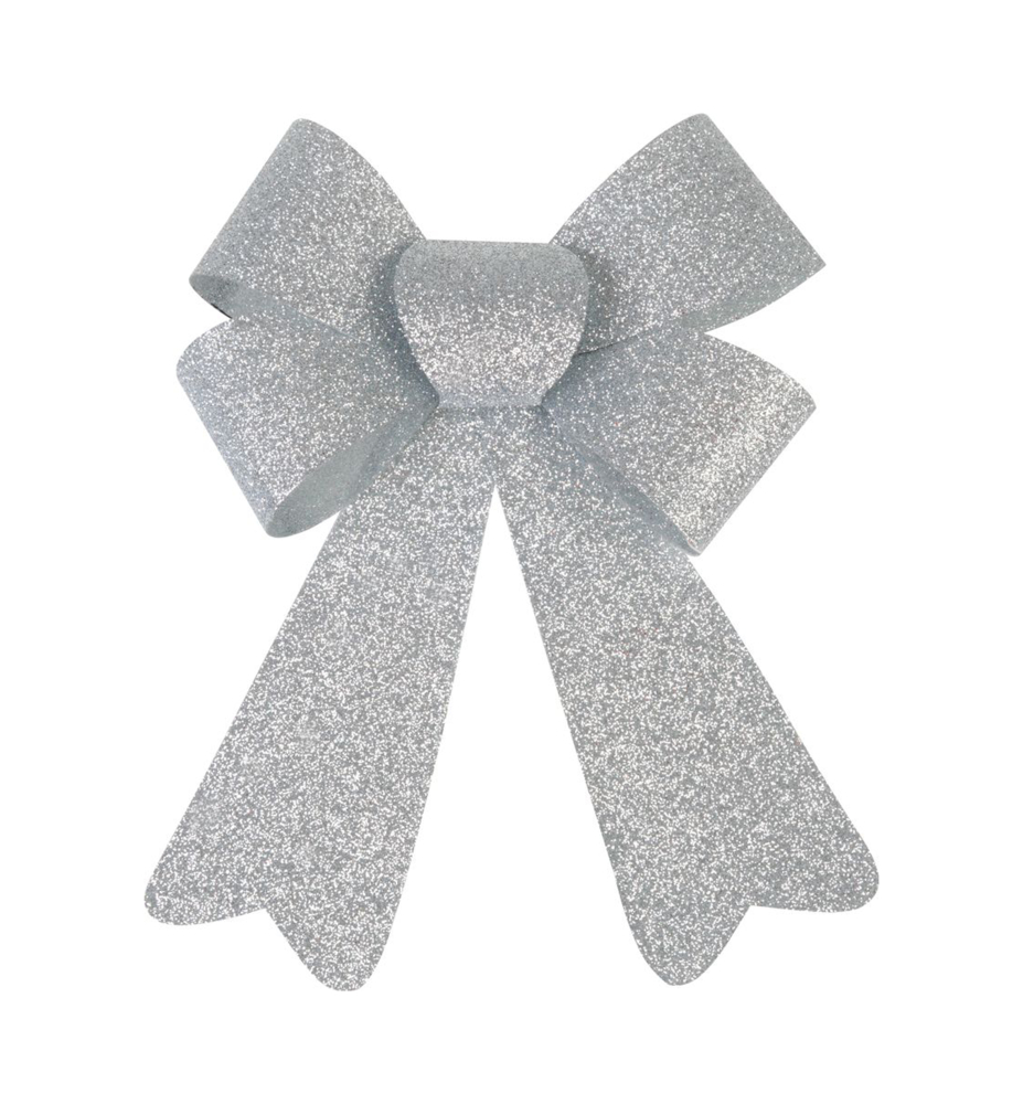Weihnachtsdekoration in Form einer Schleife in silberner Farbe.