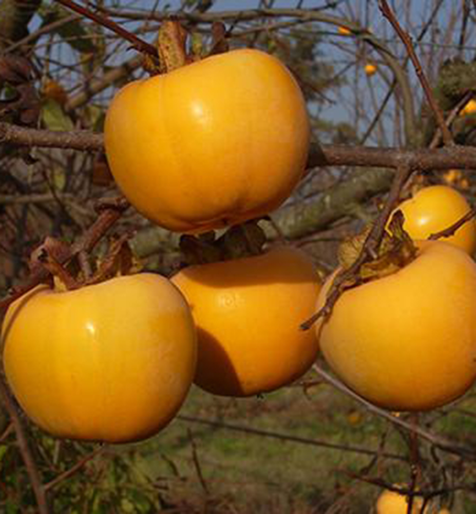 Eigenschaften: Die Sorte „TIPO“ ist eine sehr fruchtbare Sorte, die große kugelförmige Früchte mit leicht gewellter Oberfläche hervorbringt. Die glänzende Schale hat im reifen Zustand eine gelb-orange Farbe. Das Fruchtfleisch ist orange, süß und schmeckt nach Aprikose. Die Früchte reifen Mitte Oktober, nach der Ernte lassen wir sie einige Tage ruhen, damit sie einen süßen Geschmack bekommen. Er wächst wie ein hoher Baum, dessen Höhe durch Beschneiden angepasst werden kann.