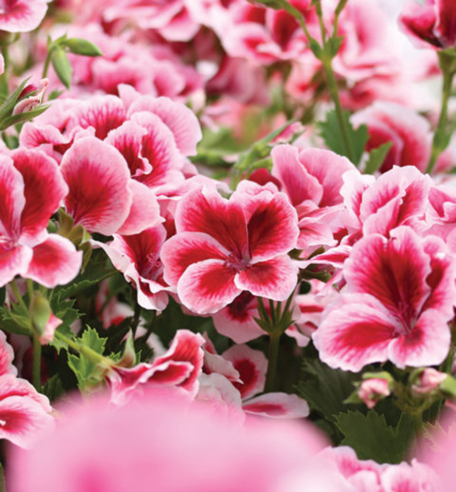 ‚ARISTO‘-Geranien zeichnen sich durch eine üppige und gleichmäßige Blüte aus. Ihr Wuchs ist aufrecht. Sie besitzen runde bis herzförmige Blätter mit feiner Zahnung in verschiedenen Grüntönen. Großblumige Geranien eignen sich auch für den Innenbereich.