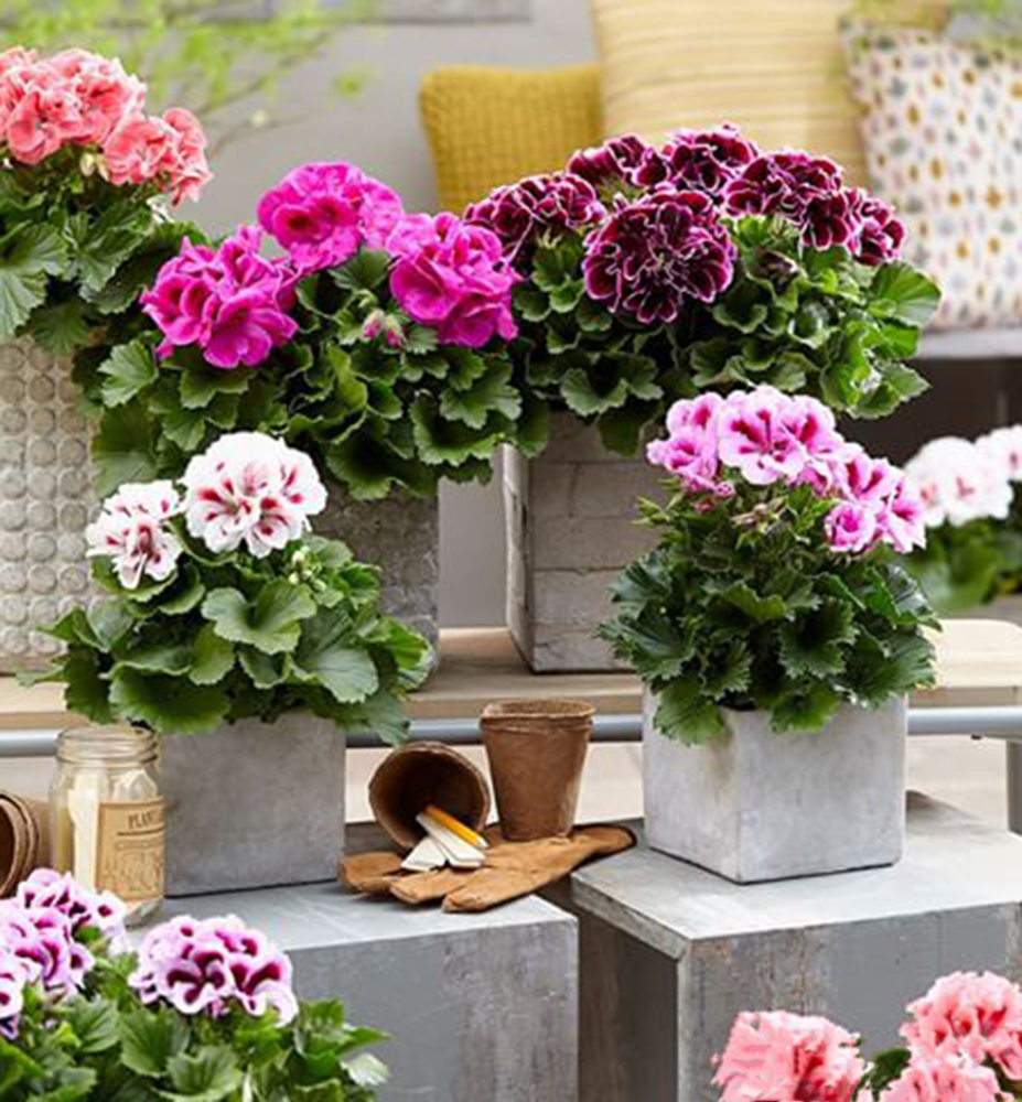 Die Geranien der Serie ‚ARISTO®‘ zeichnen sich durch eine üppige und gleichmäßige Blüte aus. Ihr Wuchs ist aufrecht und kompakt. Das Laub ist rund bis herzförmig, fein gezahnt und zeigt sich in verschiedenen Grüntönen. Großblumige Geranien eignen sich zudem hervorragend für die Kultur im Innenbereich.