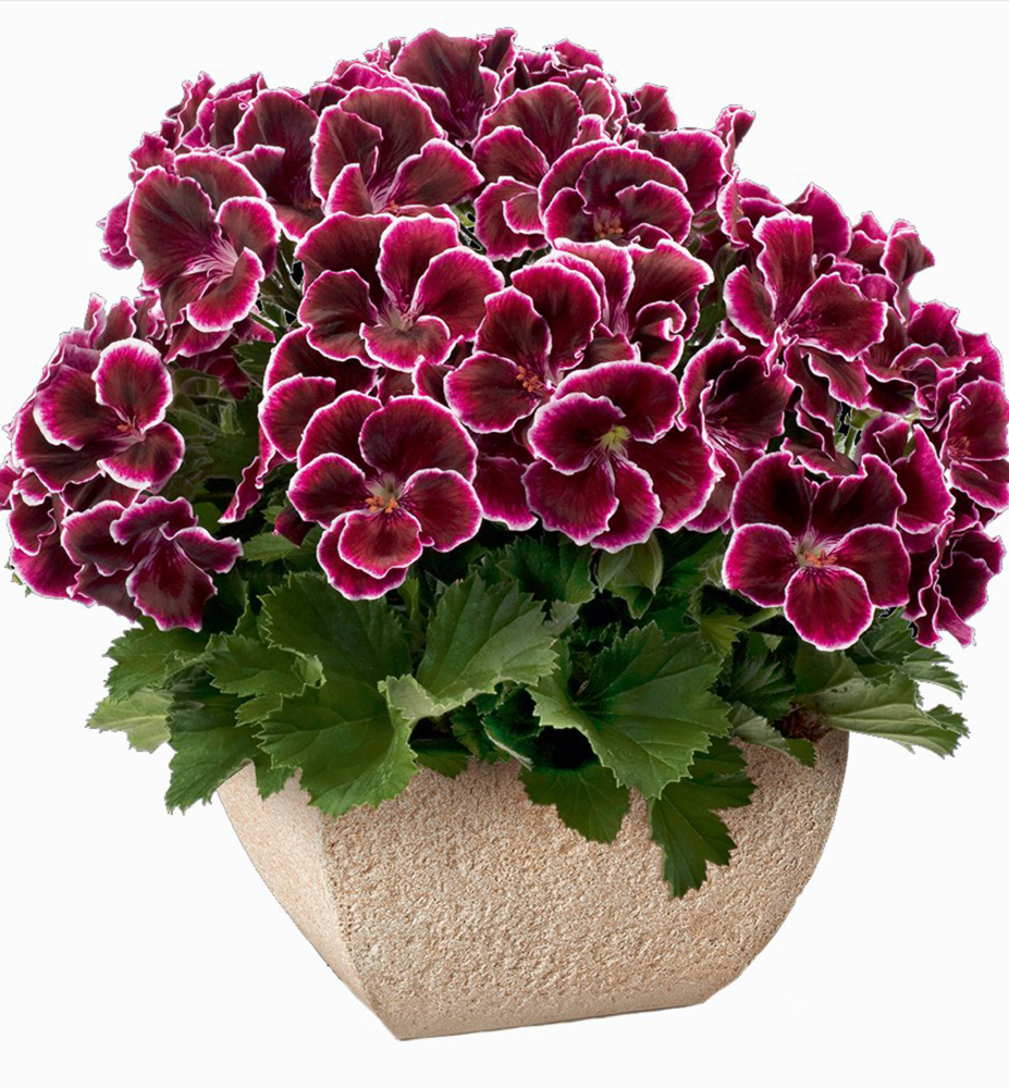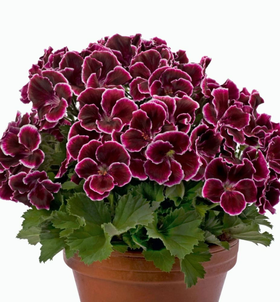 Eigenschaften: Die Edelgeranie ´ARISTO®BLACK BEAUTY´ ist eine besonders beliebte Sorte. Ihre dunkel bordeauxroten Blüten mit kontrastierendem weißem Rand machen sie zu einem echten Blickfang auf Balkon und Terrasse.