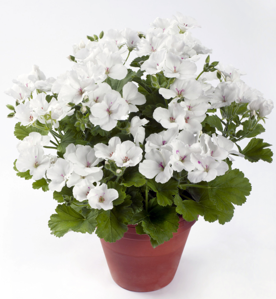 Eigenschaften: Die großblumige Edelgeranie ´CANDY FLOWERS® WHITE´ besticht durch ihre großen, reinweißen Blüten, deren Mitte von markanten rosaroten Staubgefäßen geschmückt wird. Die tiefgrünen Blätter sind gezackt. Edelgeranie der Serie „CANDY FLOWERS“ zeichnen sich durch einen aufrechten, üppigen Wuchs aus. Sie verzweigen sich hervorragend und beginnen besonders früh zu blühen. Die Blütezeit dauert ununterbrochen vom Frühling bis zum ersten Frost. Edelgeranien dieser Gruppe eignen sich sowohl für Blumenbeete als auch für Kübel und sind zudem sehr hitzebeständig.
