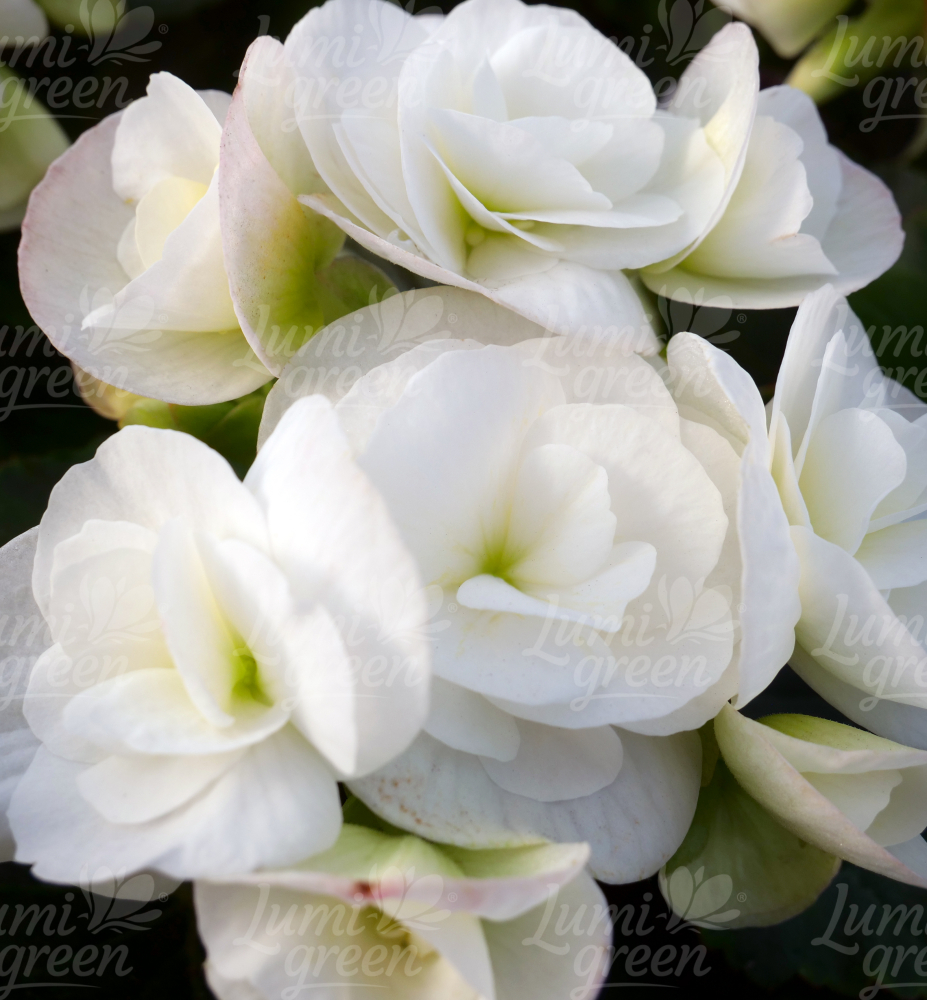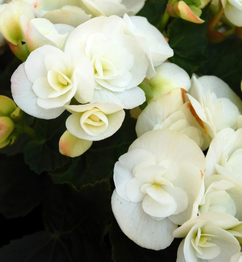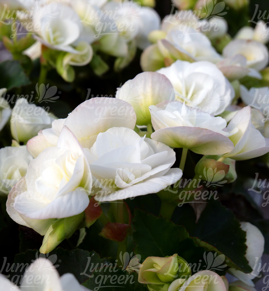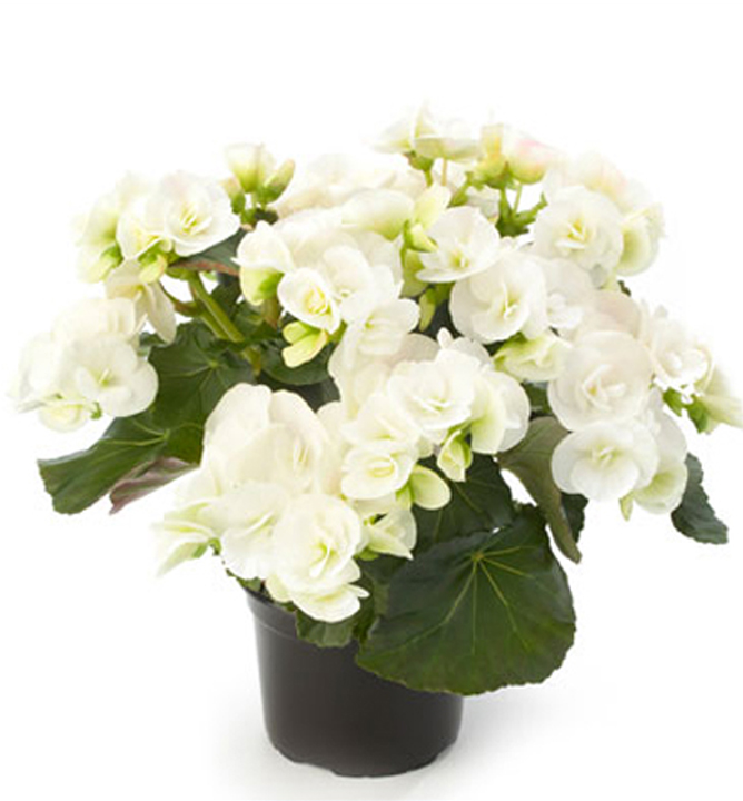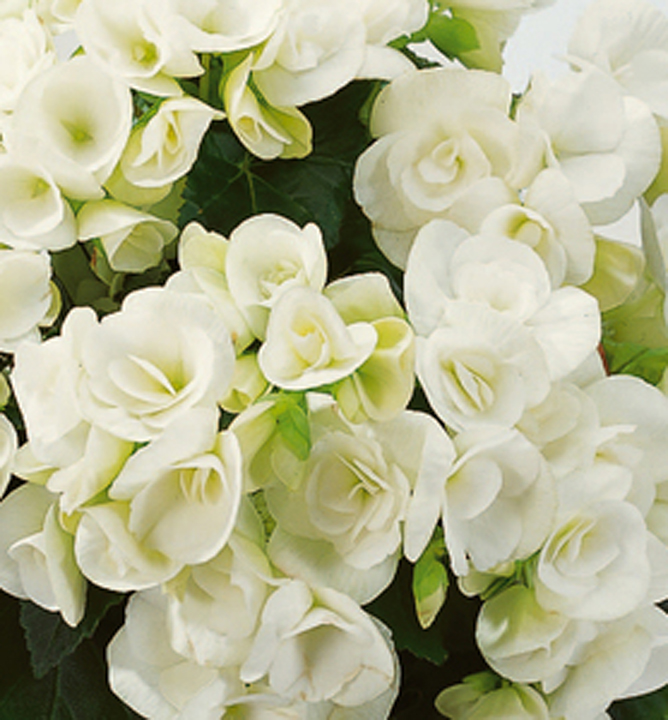 Eigenschaften: Die Begonie ´SUNBRERO CLARA´ besticht durch gefüllte schneeweiße Blüten, die auf aufrechten Stielen wachsen. Die unteren Blütenblätter können einen leicht grünlichen Ton annehmen. Die Blätter sind dunkelgrün und haben einen leicht gewellten Rand. Begonien sind vielseitig einsetzbar und eignen sich für Pflanzgefäße, Schalen, Kästen, Hängekörbe, für die Wohnung oder das Wintergarten.