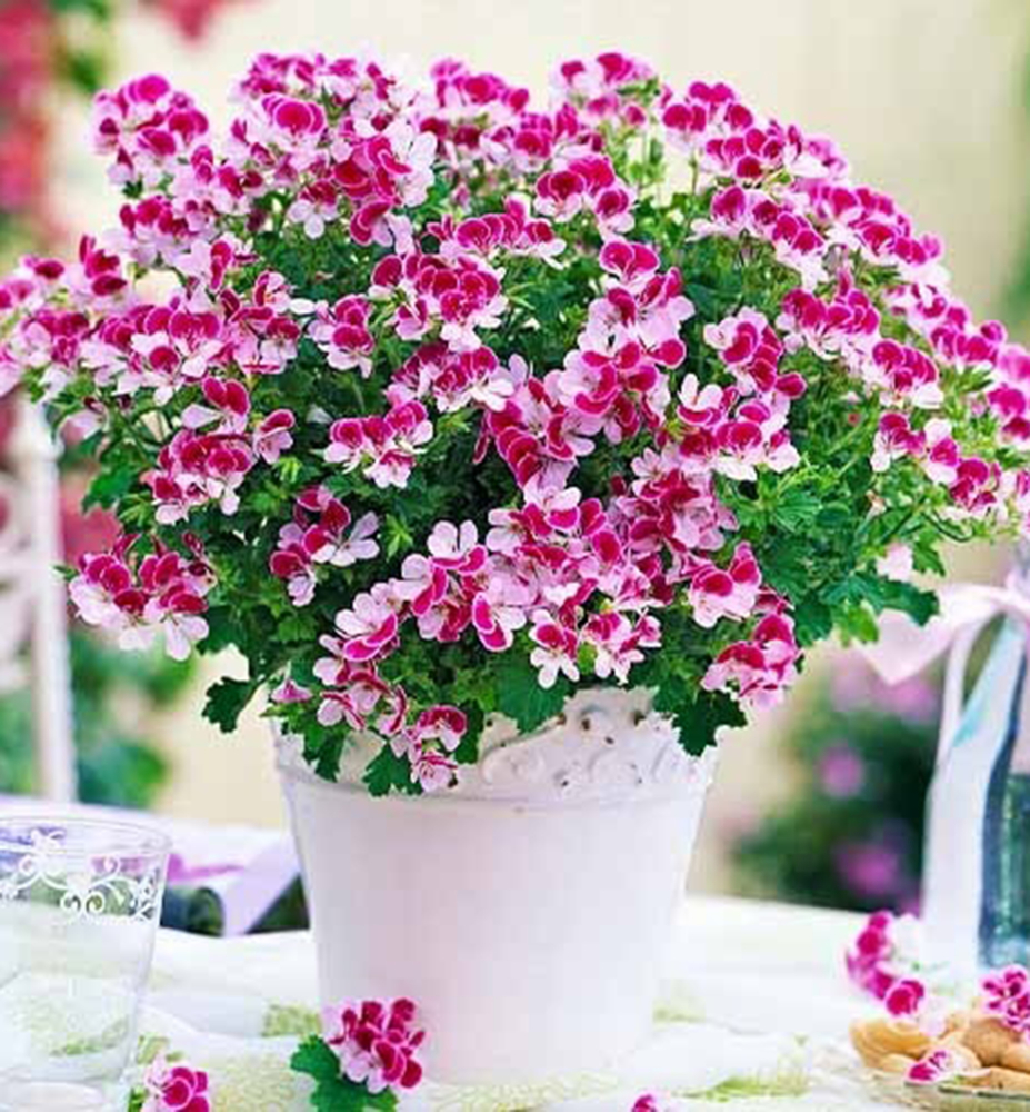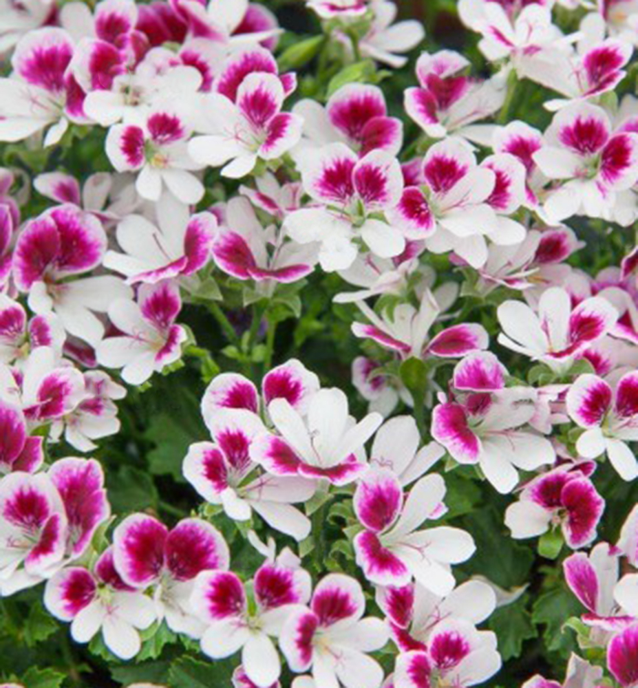 Die Pelargoniengruppe ´ANGELEYES®´ zeichnet sich durch kräftiges Wachstum und reichhaltigen Blütenflor kleiner Blüten aus, deren Form an Schmetterlinge erinnert. Pelargonien sind ideale einjährige Pflanzen für die Bepflanzung von Kübeln oder Hängeampeln auf Balkon oder Terrasse.