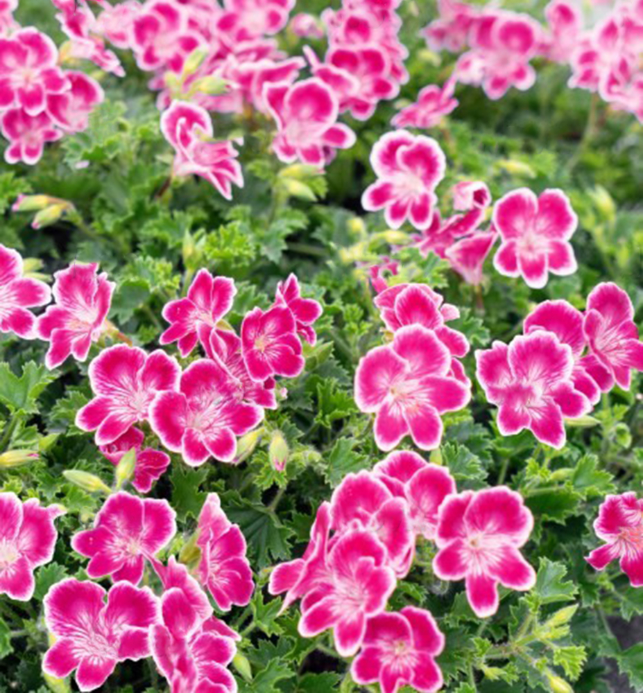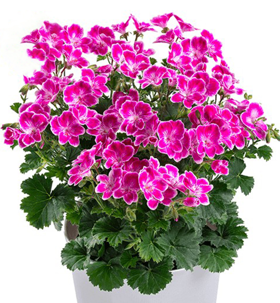 Die Pelargoniengruppe ´ANGELEYES®´ zeichnet sich durch kräftiges Wachstum und reichhaltigen Blütenflor kleiner Blüten aus, deren Form an Schmetterlinge erinnert. Pelargonien sind ideale einjährige Pflanzen für die Bepflanzung von Kübeln oder Hängeampeln auf Balkon oder Terrasse.