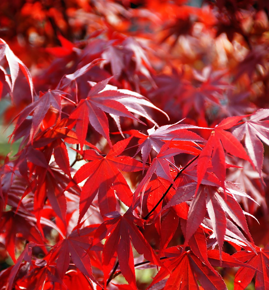 Unübersehbarer Fächerahorn mit auffälligen roten Blättern von Frühling bis Herbst.