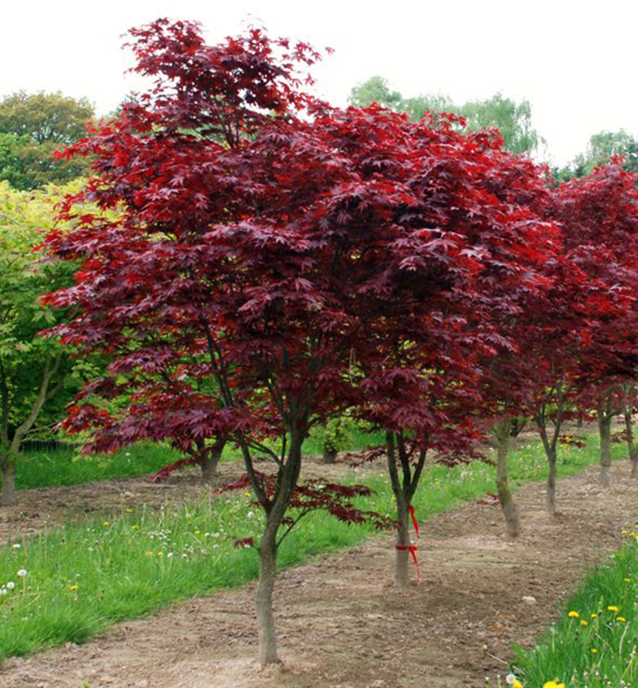 Anbau: Japanische Ahorne gedeihen fast überall, solange die natürlichen Bedingungen gegeben sind. Sie benötigen nährstoffreichen, lockeren Lehmboden und einen halbschattigen Standort. Trockenheit führt zu verdrehten und welken Blättern, was unansehnlich ist. Japanische Ahorne sind von der Größe her zwischen Baum und Strauch einzuordnen. Sie bilden von Natur aus mehrere Stämme. Um einen einstämmigen Baum zu ziehen, wählt man den kräftigsten Trieb, befestigt ihn an einer Stütze und entfernt die anderen. Die Krone wird dann am verbleibenden Stamm auf die gewünschte Höhe geformt.