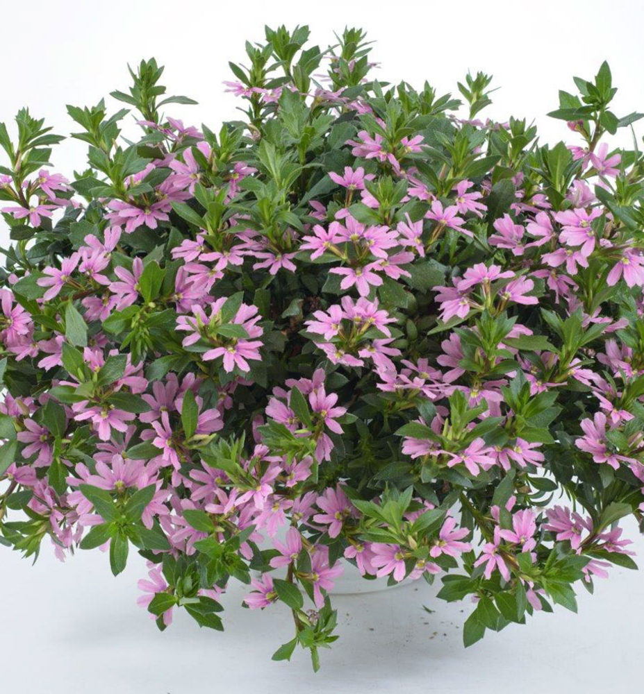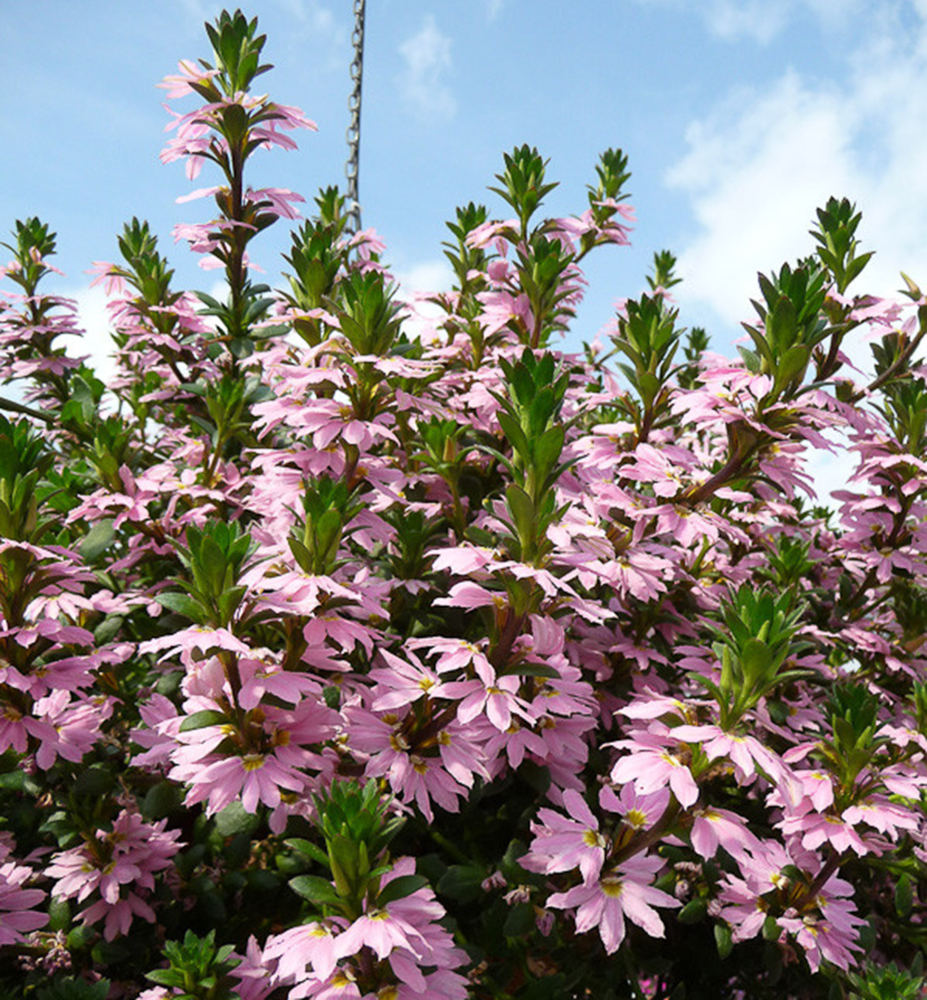 Eigenschaften:Fächerblume 'VENTIA ROSE' hat zarte, blassrosa Blüten, die in regelmäßigen Fächern angeordnet sind. Die Blüten bestehen aus länglichen Blütenblättern mit einem markanten gelben Auge. Diese Staude wird oft zusammen mit Geranien oder anderen Balkonpflanzen gepflanzt, wodurch interessante Kompositionen entstehen.