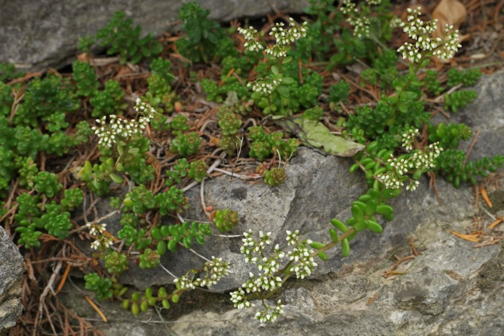 Eigenschaften: Fetthenne ´ATHORUM´ ist eine mehrjährige Bodendeckerpflanze mit kleinen, fleischigen Blättern. Sie sind kugelförmig und auf der Oberseite leicht abgeflacht. Sie haben eine grüne Farbe, verfärben sich aber im Sommer an einem sonnigen Standort rot. Von Juli bis August blüht es mit weißen Blütenbüscheln. Kalkstein eignet sich besonders für Dachgärten, da er interessant strukturierte durchgehende Teppiche bildet. Es kann in Töpfen angebaut werden, wo es einen Kaskadeneffekt erzeugt.