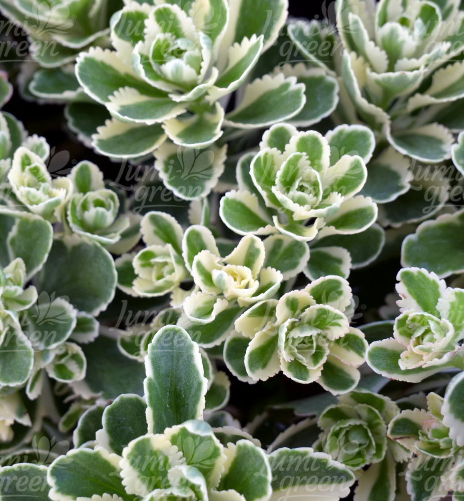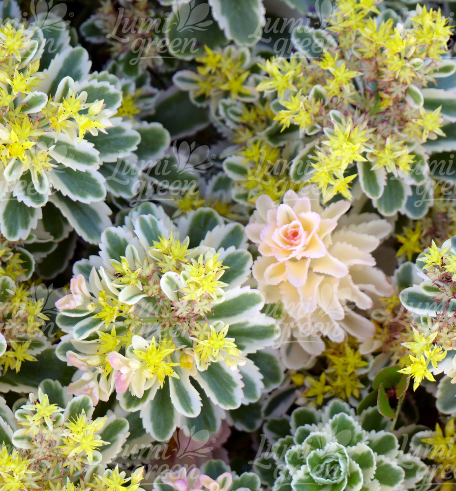 Eigenschaften: Die einzigartige Sorte ´Atlantis´ zeigt eine faszinierende Farbkombination. Feste, fleischige Rosetten aus gezackten Blättern von hellgrüner Farbe mit einem cremegelben Rand. Sie blüht ab Juli mit flachen Blütenständen, die aus leuchtend gelben sternförmigen Blüten bestehen. Die Blüte dauert 6–8 Wochen und die Blüten sind eine große Attraktion für Bienen und Hummeln. Sie wird 10–20 cm hoch. Sie eignet sich sehr gut zur Bepflanzung von Steingärten, eignet sich aber auch hervorragend als Einfassung von Wegen, Mauern und Rasenflächen. Fetthenne ´Atlantis´ stammt aus Amerika und ist eine mehrfach ausgezeichnete Sorte.