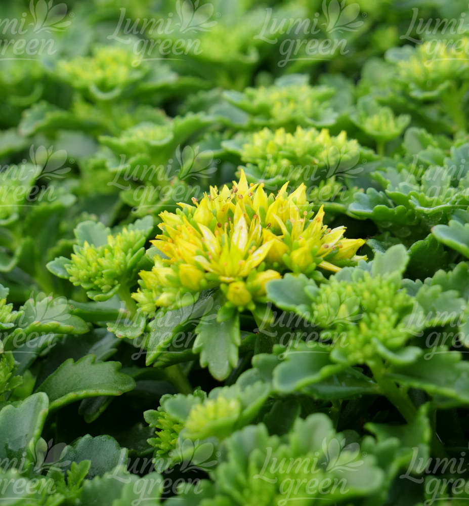 Eigenschaften: Fetthenne ´LITTLE MISS SUNSHINE´ ist ein mehrjähriger Bodendecker mit auffälligem Laub. Die Blätter sind dunkelgrün, sehr glänzend und haben attraktive Zacken am Rand. Vom Frühsommer bis zum Herbst wachsen an kräftigen, aufrechten Stielen volle, leuchtend gelbe, sternförmige Blüten. Sie sind eine Attraktion für Bienen und andere Insekten.