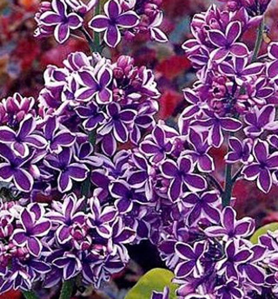 Eigenschaften: Der Flieder ´SENSATION‘ besticht durch die untypische Färbung seiner Blüten, die sofort ins Auge fallen. Die Blüten haben eine satte violette Farbe mit kontrastierendem weißen Rand. Mit ihrem betörenden Duft erfüllen sie den ganzen Garten und eignen sich auch hervorragend als Schnittblumen für die Vase. Dieser Kultivar überzeugt durch eine reiche Belaubung. Die Blätter sind herzförmig, glänzend und sattgrün. Er wächst auf eine Höhe von 2–4 m.