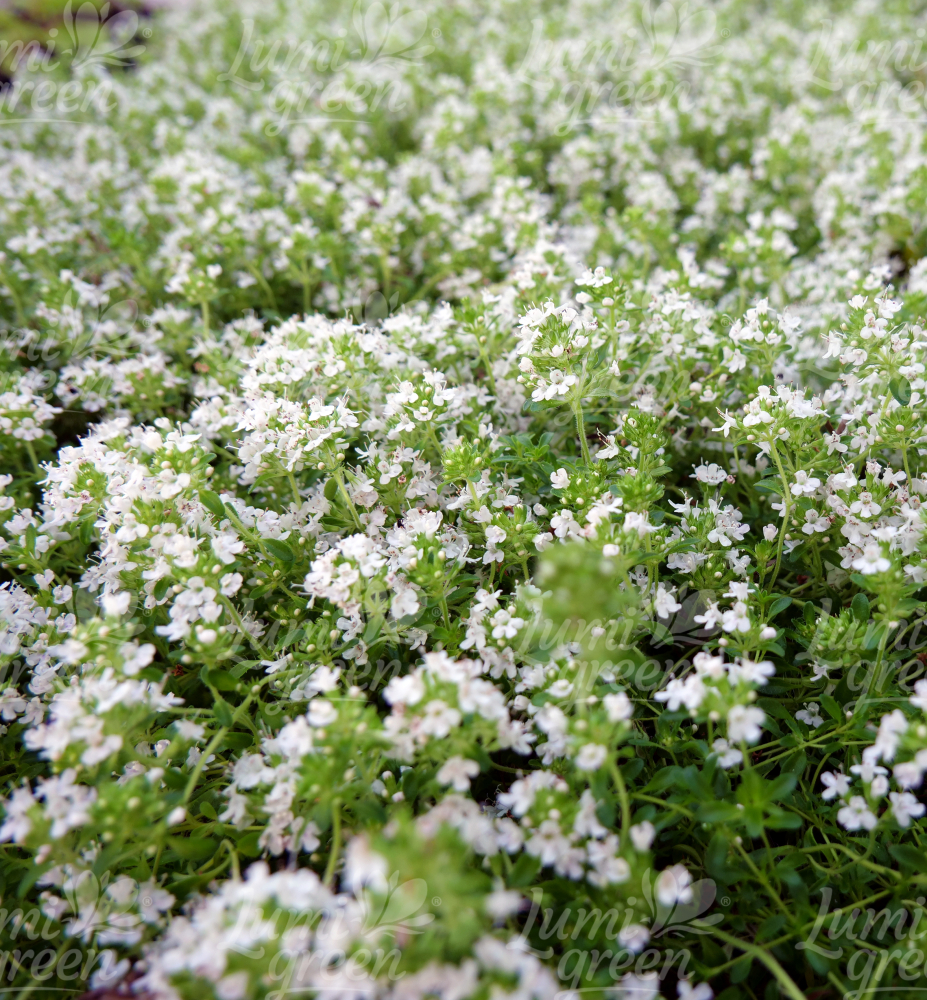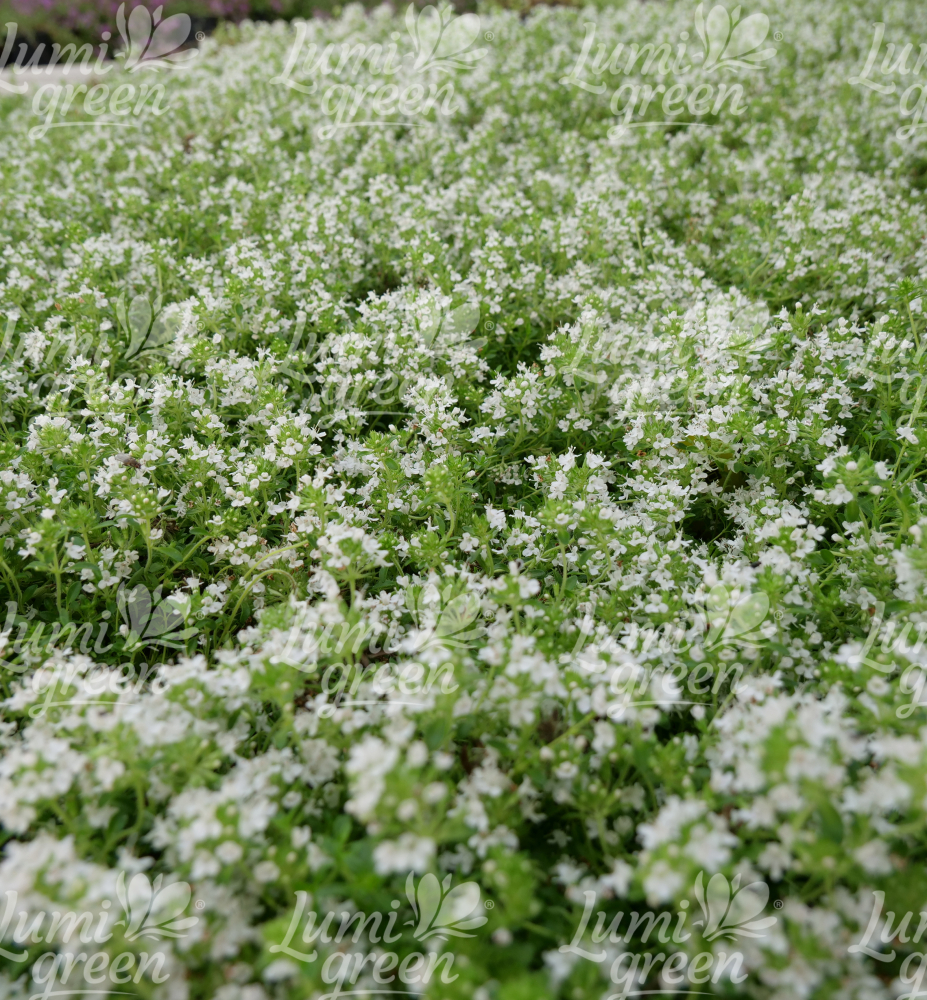 Eigenschaften: Frühblühender Thymian ´ALBIFLORUS´ bildet in kurzer Zeit einen schneeweißen Teppich, der ein typisch angenehmes Aroma um sich herum verbreitet. Sie blüht den ganzen Sommer über. Die Blätter sind klein, oval und tiefgrün. Es lässt sich sehr gut mit lila und rosa Frühblühender Thymian kombinieren.