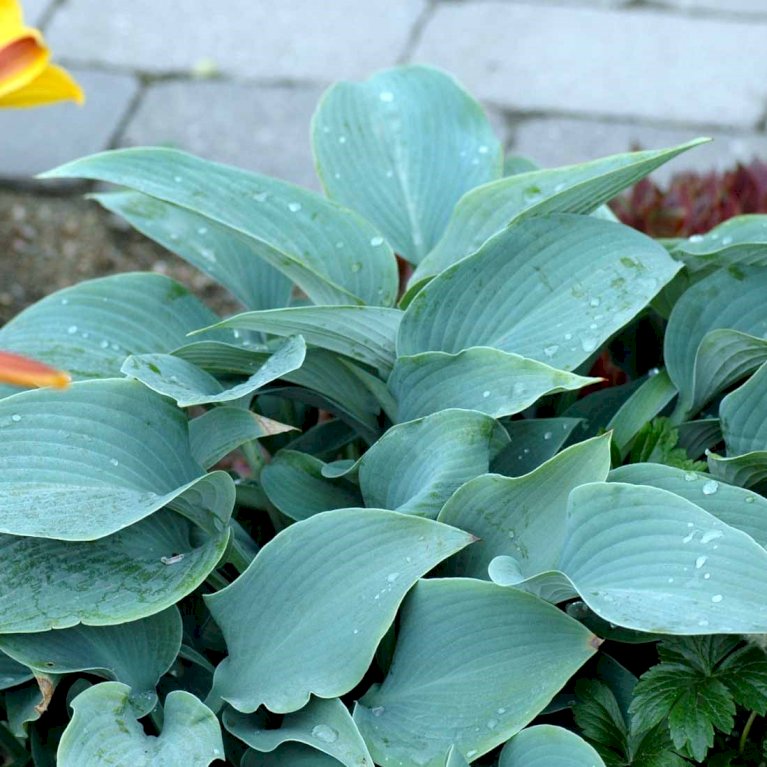 Eigenschaften: Die Sorte ´HALCYON´ besticht durch ihre intensiv gefärbten, blaugrünen, herzförmigen Blätter, die mit einer grauen Wachsschicht überzogen sind. Sie sind mit attraktiven geprägten Längsadern verziert. Über dem kompakten Blattbüschel bilden sich im Sommer lavendelviolette Blüten. Sie eignet sich hervorragend für schattige Staudenbeete oder als Bewuchs unter höheren Büschen und Bäumen.