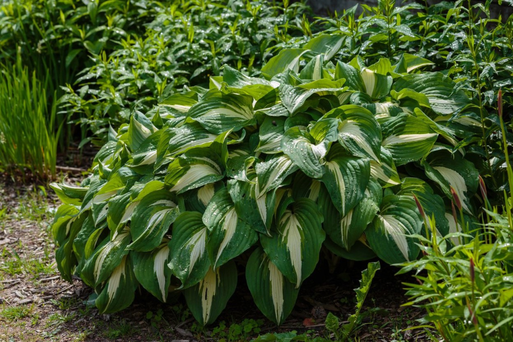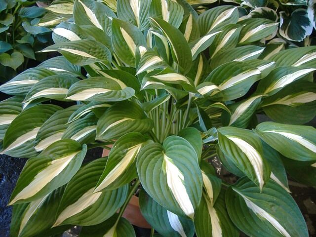 Eigenschaften: Funkie ´RISKY BUSINESS´ wird jeden Gastliebhaber mit seinen Buchstaben begeistern. Das interessante Merkmal dieser Sorte sind die auffällig gemusterten Blätter. In der Mitte des dunkelgrünen Blattes befindet sich ein weißer Streifen. Sie erreicht eine Höhe von 40–50 cm und eine Breite von 60–70 cm. Im Sommer blüht sie mit auffälligen Lavendelblüten an weißen, aufrechten Stielen. Funkien eignen sich hervorragend als Stauden für schattenliebende Beete, wo sie durch ihre vielfarbigen Blätter farbenfrohe Strukturen bilden.