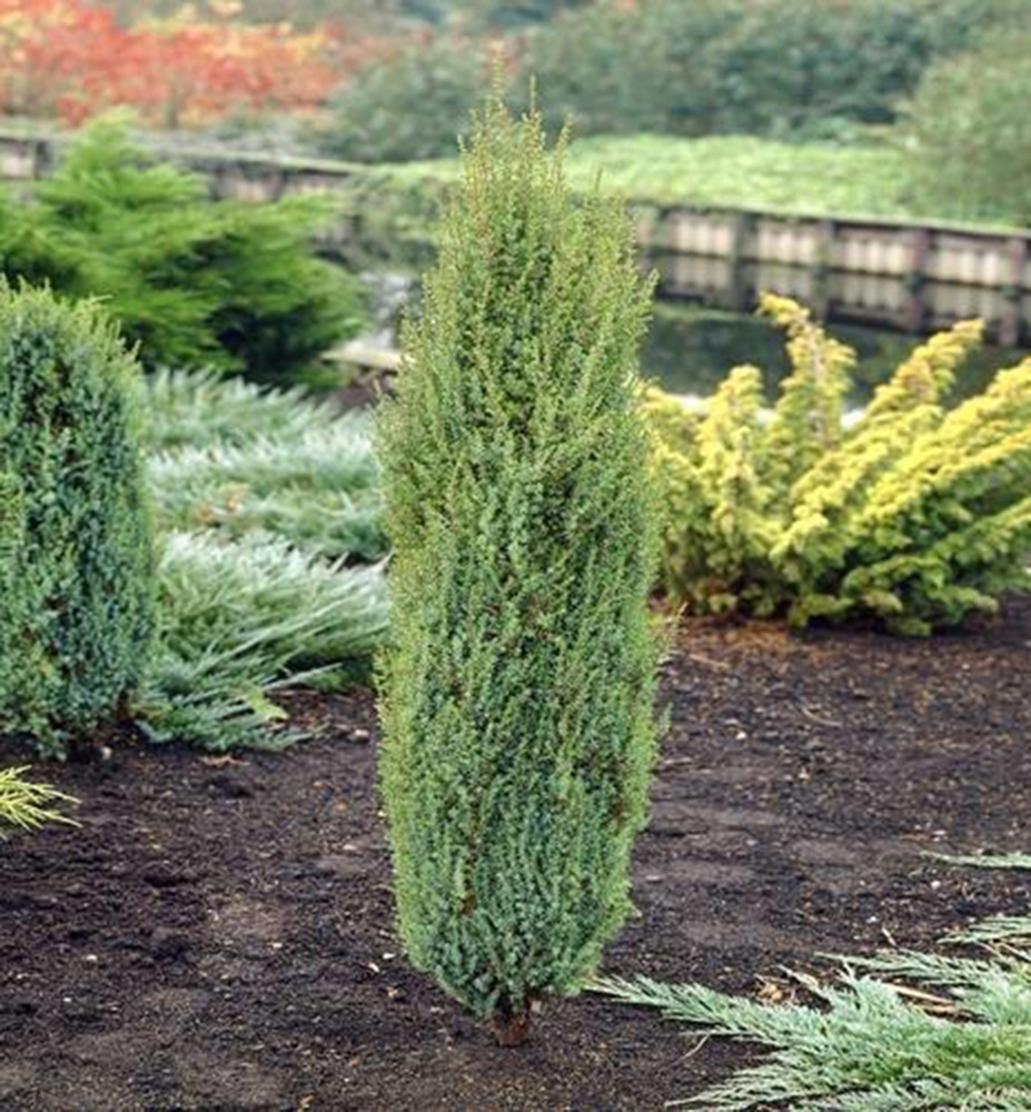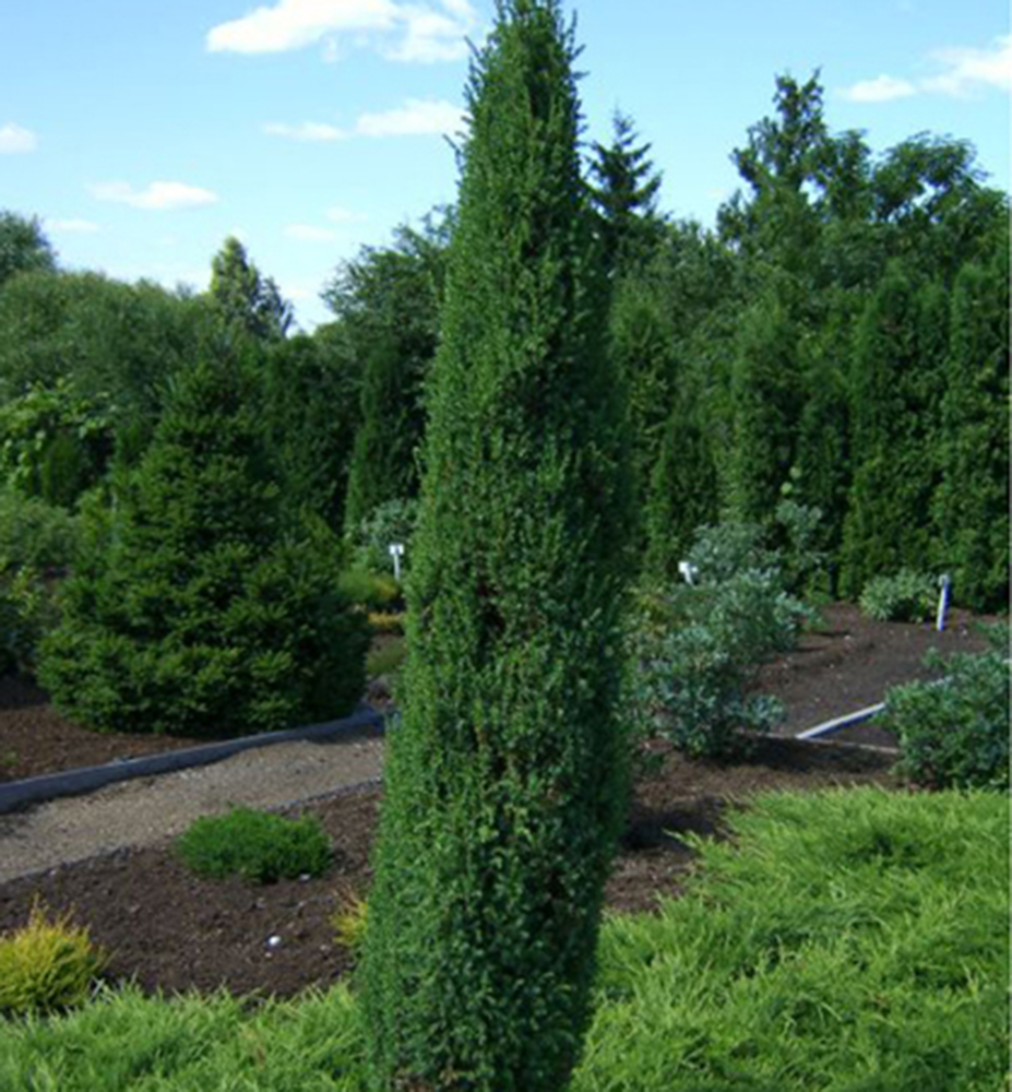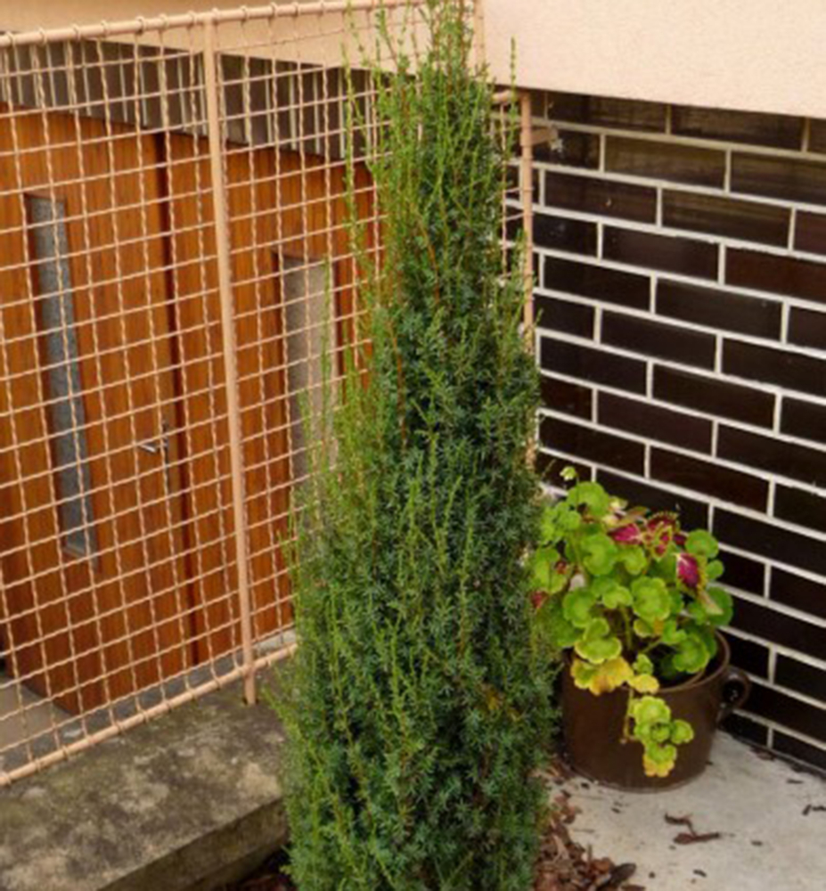 Merkmale:Der Gewöhnliche Wacholder „ARNOLD“ zeichnet sich durch seinen sehr dichten, schmalen bis säulenförmigen und kompakten Wuchs aus. Es fungiert als unübersehbare grüne Säule. Sie wächst langsam bis mäßig schnell und erreicht eine Höhe von 3 - 3,5 m (jährliches Wachstum beträgt ca. 20 cm). Es hat kurze, feste Nadeln mit einem angenehmen Aroma. Die Nadeln scheinen auf der Oberseite mit einem silbrigen Belag überzogen zu sein und sind auf der Unterseite grün, wodurch ein sehr interessanter Farbeffekt entsteht. Die Sorte „ARNOLD“ hat stärkere und haltbarere Triebe als ältere Sorten, wodurch sie im Winter dem Schnee standhalten und sich nicht darunter verbiegen.