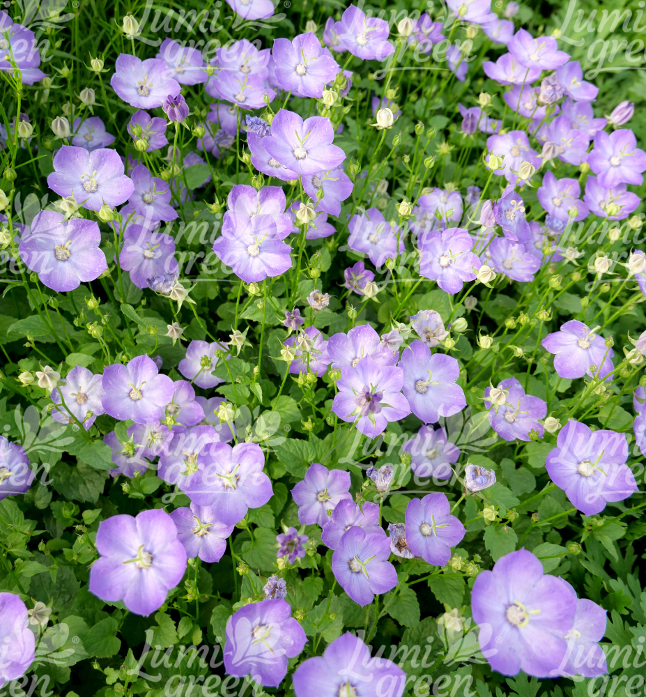 Üppig blühender Teppich aus violetten, glockenförmigen Blüten mit weißer Mitte.