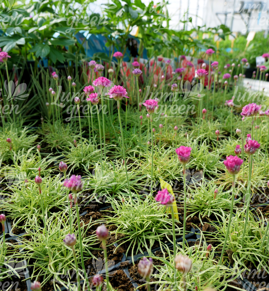 NEU! Eine außergewöhnliche Grasnelke mit bunten Blättern und rosa-kugelförmigen Blütenständen.