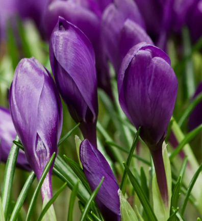 Eigenschaften: Der großblumige Krokus ´FLOWER RECORD´ blüht im zeitigen Frühjahr mit großen violettblauen Blüten. Blumen wachsen in Gruppen. Die Blätter sind schmal und wachsen in einem kompakten Bündel. Sie werden etwa 10 cm hoch. Wir können sie in Gruppen pflanzen oder im Rasen verstreuen.