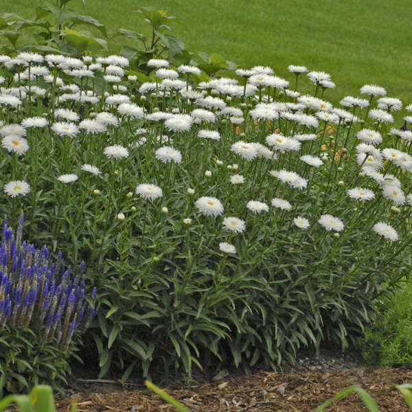Eigenschaften: Margerite ´CRAZY DAISY´ kommt aus den Pyrenäen. Die Pflanze wird etwa 70 cm hoch. Die Sorte ist interessant mit nicht-traditionellen weißen Blüten mit gelber Mitte. Die Blüten haben schmale, ausgefranste Blütenblätter. Die Blätter sind dunkelgrün, speerförmig mit gezacktem Rand. Sie gehört zu den hervorragenden Stauden für gemischte Blumenbeete, vor allem dank ihrer langen und üppigen Blüte. Es lässt sich sehr gut mit Salbei, Katzenauge, Monarda, Phlox und Gaura kombinieren.