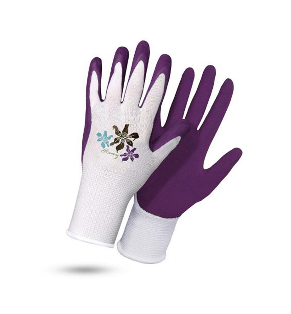 Eigenschaften:NERINE-Handschuhe bieten dank des Zweite-Haut-Effekts und der feinen Strickart hohen Tragekomfort. Die Latexbeschichtung schützt die Handfläche vor Nässe. Die violette Farbe der Beschichtung und das florale Emblem sorgen für gute Sichtbarkeit. Sie eignen sich vor allem für leichte Gartenarbeiten und Reinigungsarbeiten im Haushalt.
