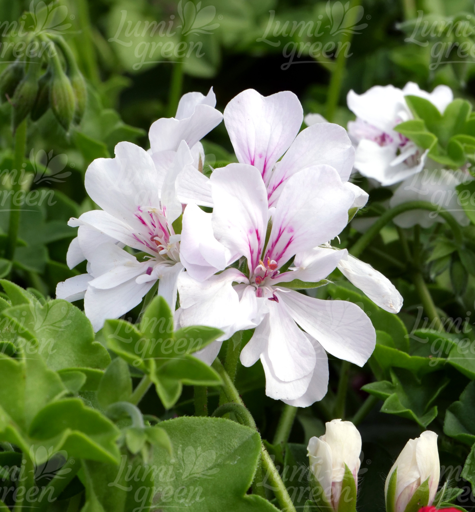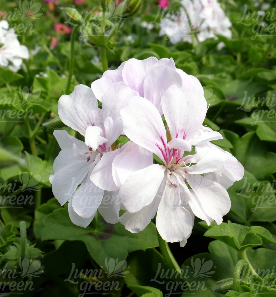 Eigenschaften: Die Hängegeranie 'SANDY' bildet während der Saison halbgefüllte, schneeweiße Blüten mit rosafarbenem Staubgefäß in der Blütenmitte. Diese Sorte ist besonders geeignet für Hängetöpfe und gut kombinierbar mit anderen farbenfrohen Sorten oder einjährigen Pflanzen. Schnell entstehen attraktive, überhängende Triebe, die Balkone und Terrassen die gesamte Saison über schmücken.