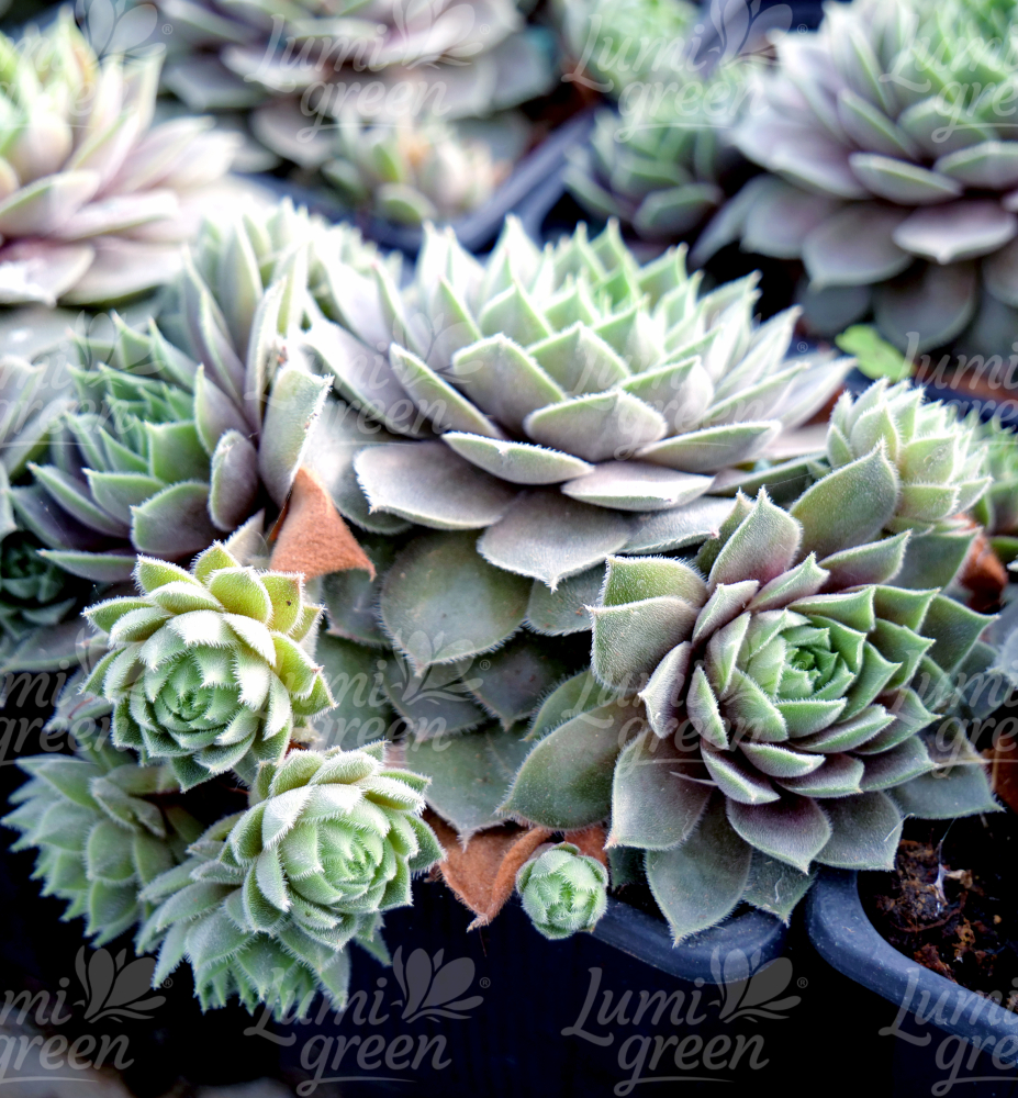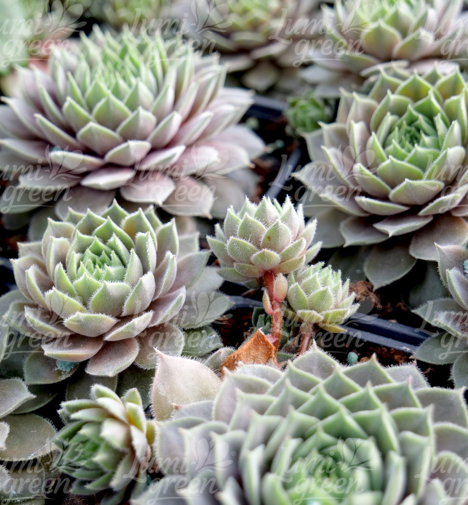 Eigenschaften: Diese stahlgrüne Hauswurz bildet große Rosetten und sticht in einem Steingarten hervorragend mit anderen Sorten hervor. Es sticht in einem Steingarten mit anderen Steingärten hervor. Sie wächst sehr schnell und bringt in kurzer Zeit viele kleinere Rosen hervor. Mehrjährige Pflanzen blühen im Juli und August. Verzweigte Blütenstände erscheinen an der Spitze von 15–20 cm langen, schuppigen Trieben. Die Blüten sind sternförmig und rosa gefärbt.