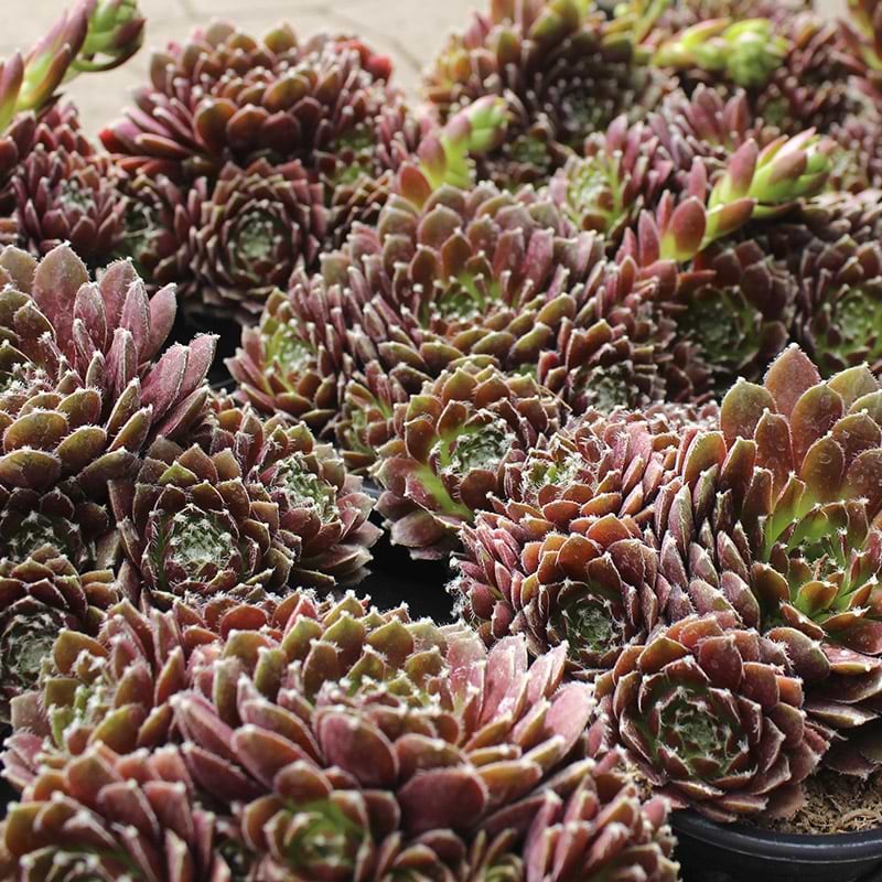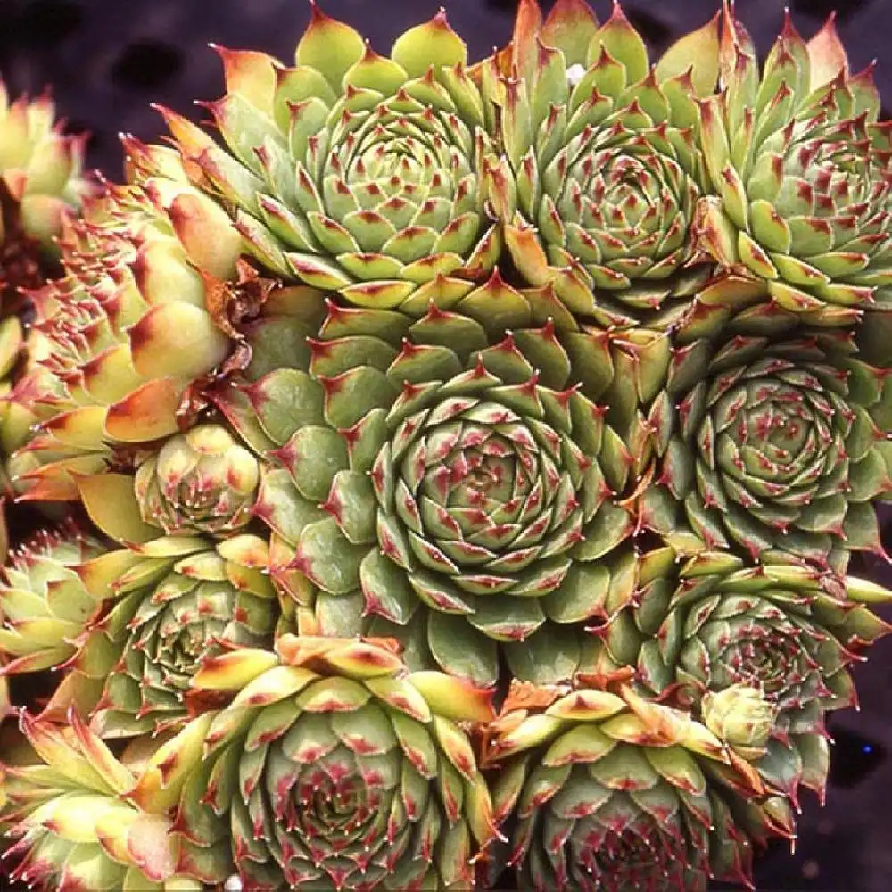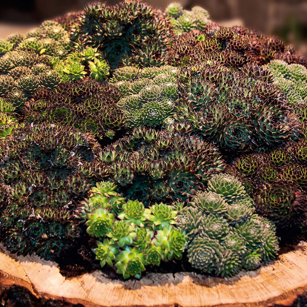 Eigenschaften: Die neue Sorte ´CASSIOPEA´ bringt eine Reihe mittelgroßer Rosetten mit frischer grüner Farbe und einem dunklen burgunderroten Rand auf jedem Blatt hervor. Dank der unterschiedlichen Farben der Rosen entstehen interessante Mosaike. Sie gedeihen am besten in Steingärten oder in Kübeln auf Balkonen und Terrassen.