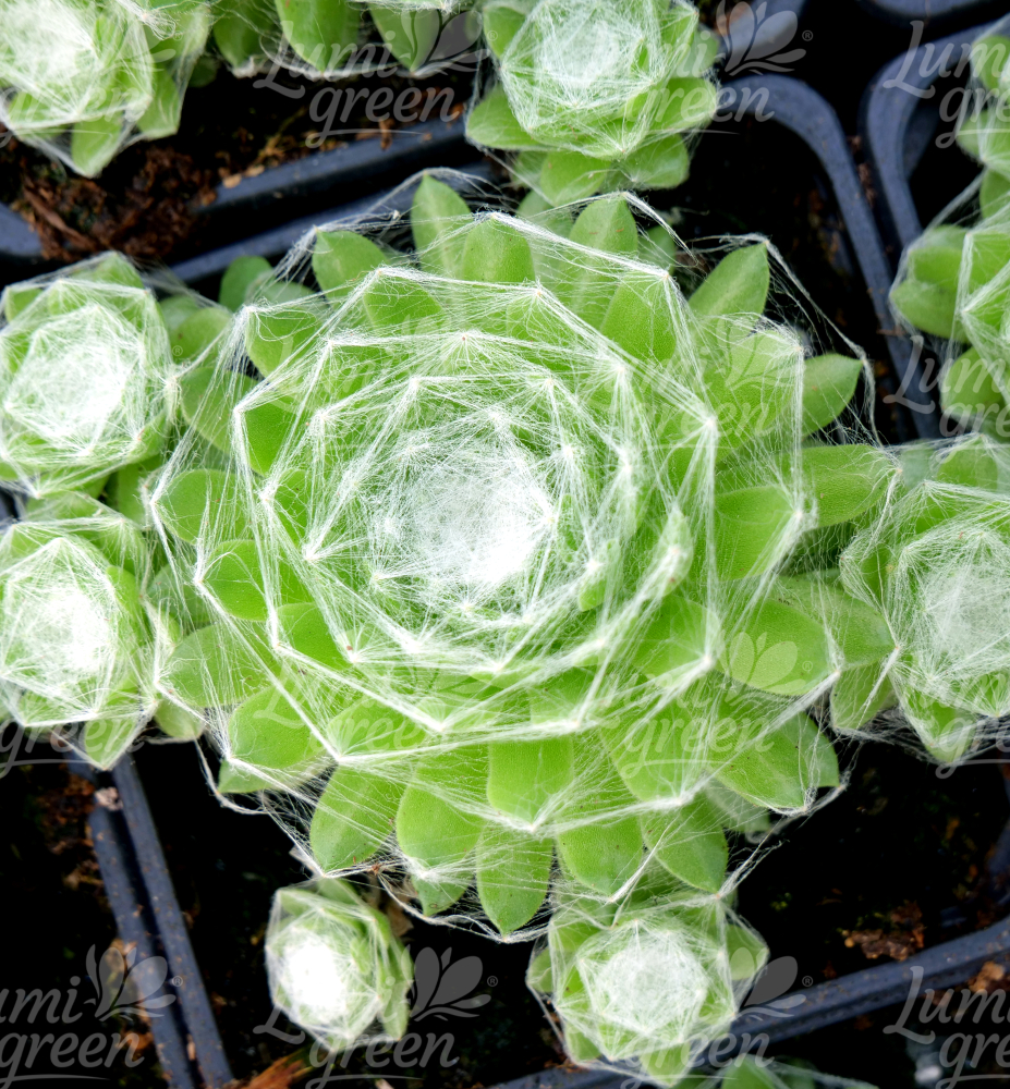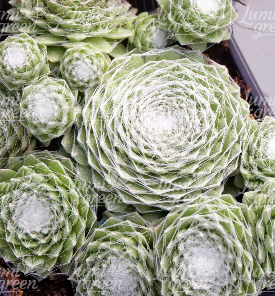 Eine anspruchslose Sorte der Spinnweb-Hauswurz mit grünen, fleischigen Blättern.