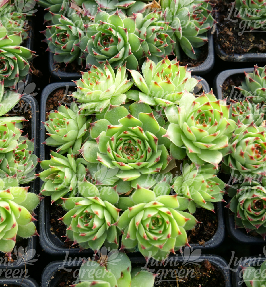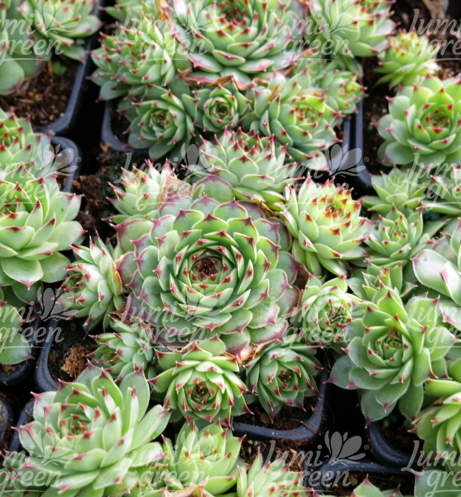 Eigenschaften: Die Hauswurz-Sorte ´TAURIS´ gehört zu den beliebten Arten aufgrund ihrer kontrastreichen Rosettenfärbung. Die fleischigen Blätter färben sich zur Mitte hin in ein sattes Grün, die Blattspitzen nehmen einen dunklen Burgunderrot-Ton an. Im Sommer blüht sie mit sternförmigen Blüten. Sie lässt sich sehr gut mit anderen Hauswurz-Sorten und weiteren Steingartenpflanzen kombinieren.