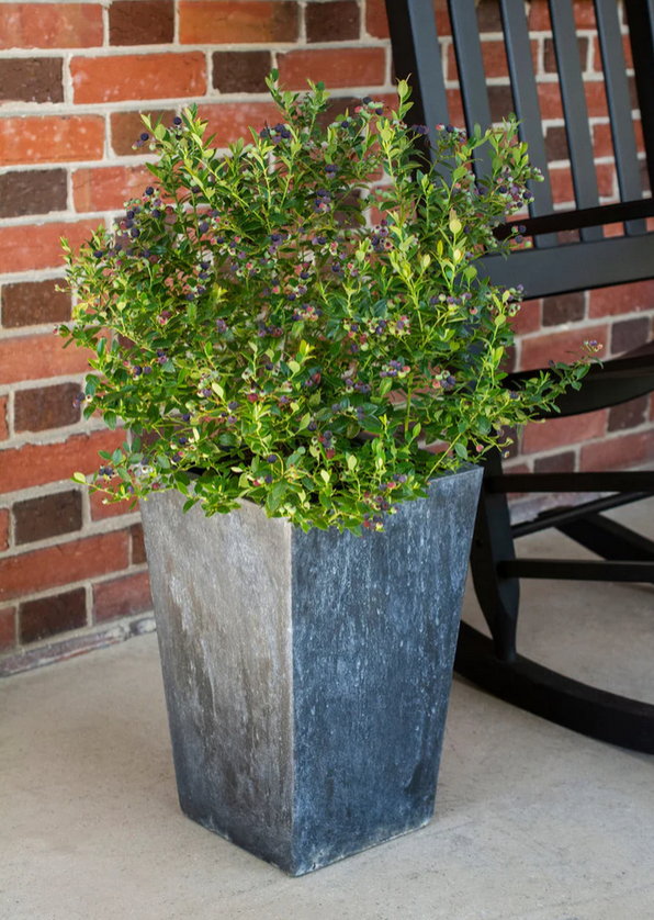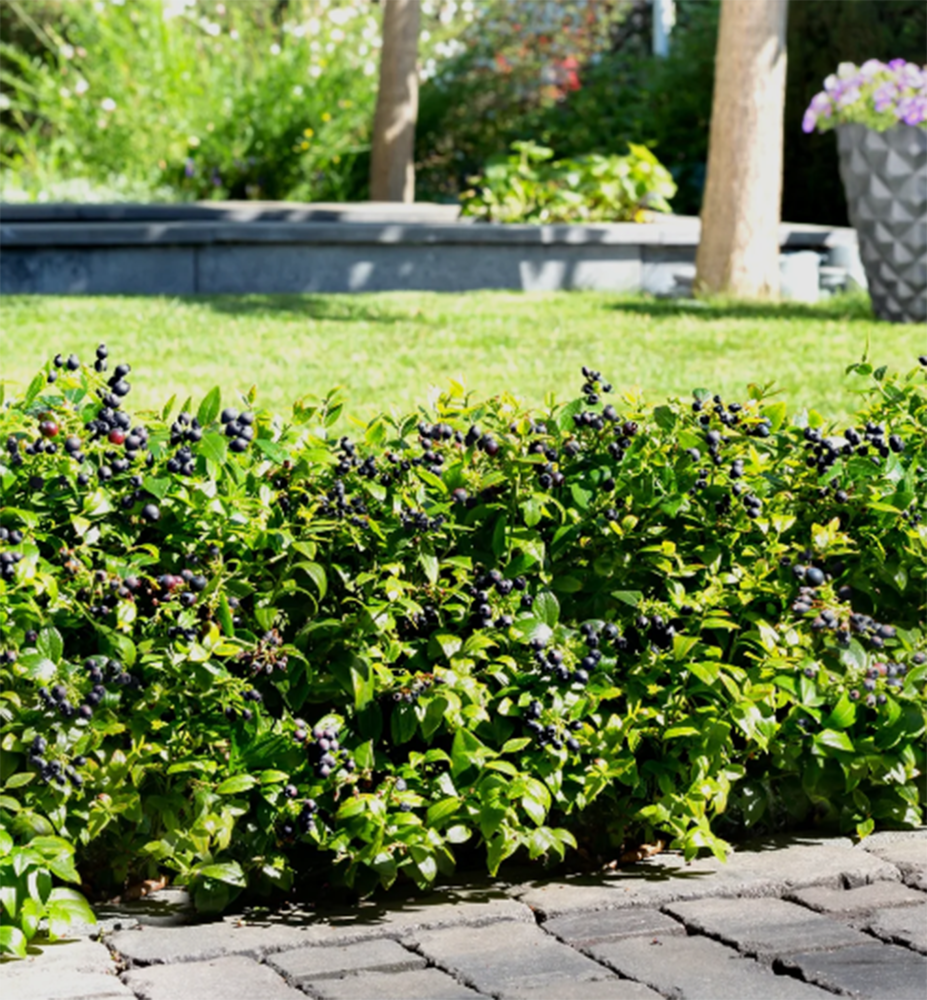 NEUHEIT! Niedriger Blaubeerstrauch mit schmalen, buchsbaumähnlichen Blättern und süßen Früchten.